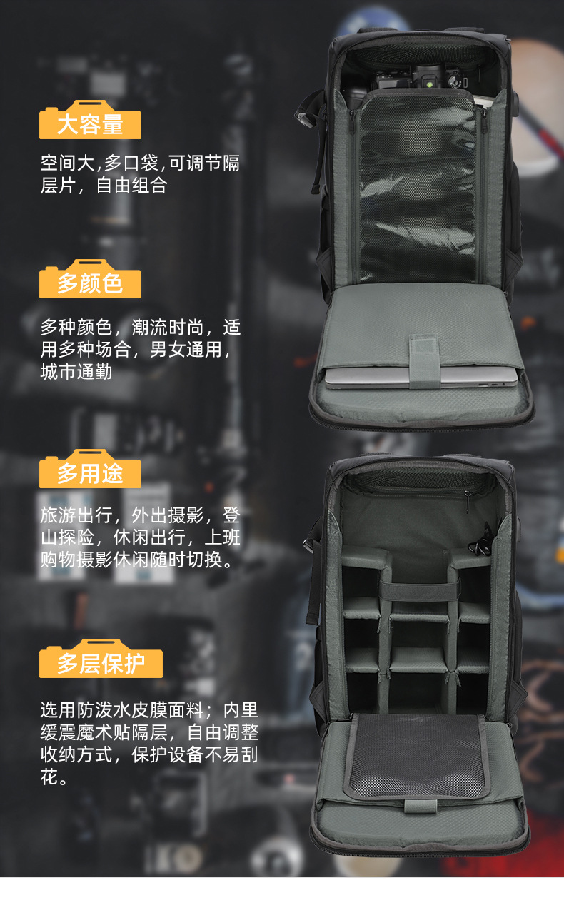 SLR 더블 어깨 카메라 가방 방수 도난 방지 대용량 필름 소재 UAV 가방 야외 가방 더블 어깨 사진 배낭