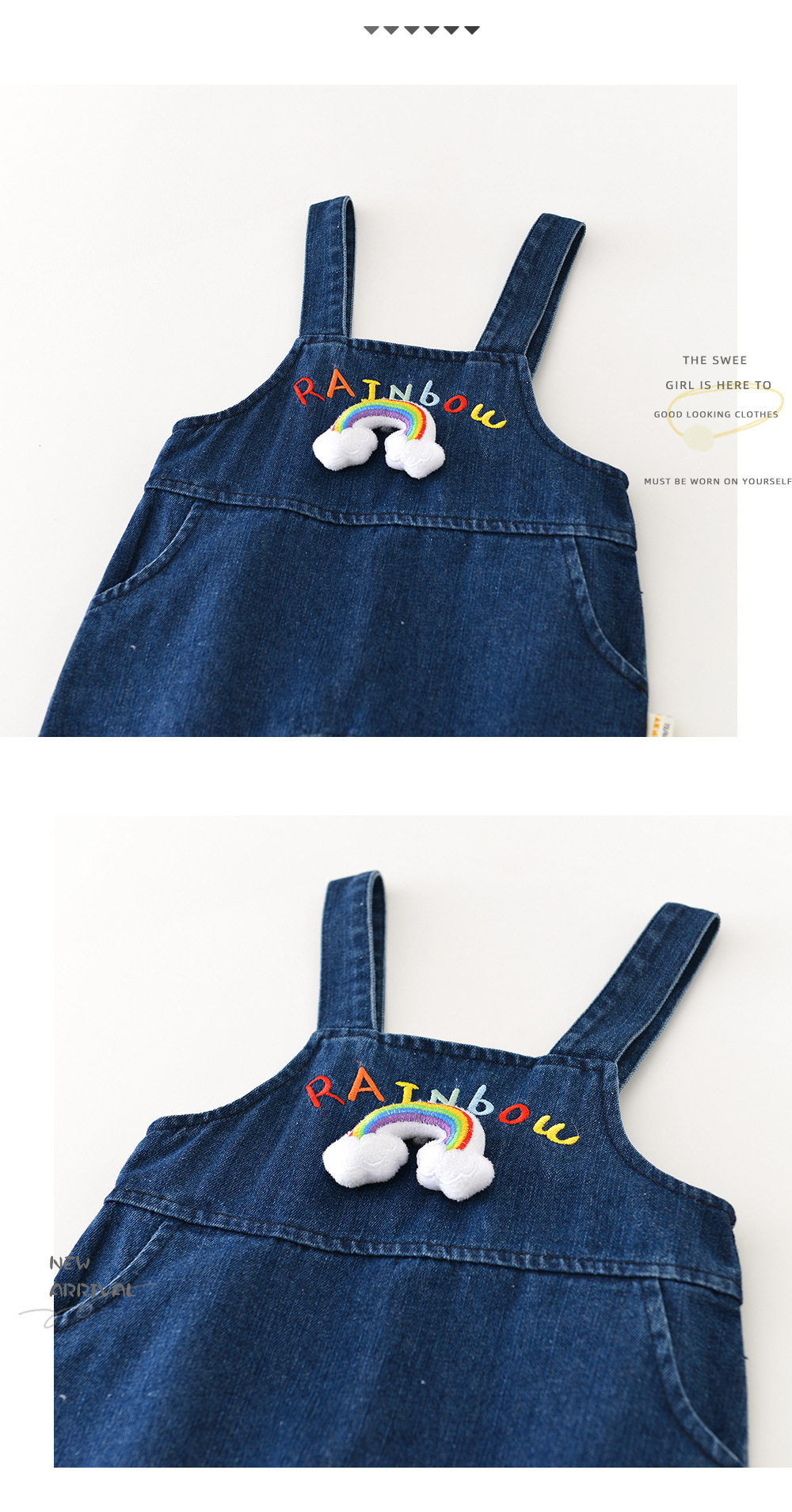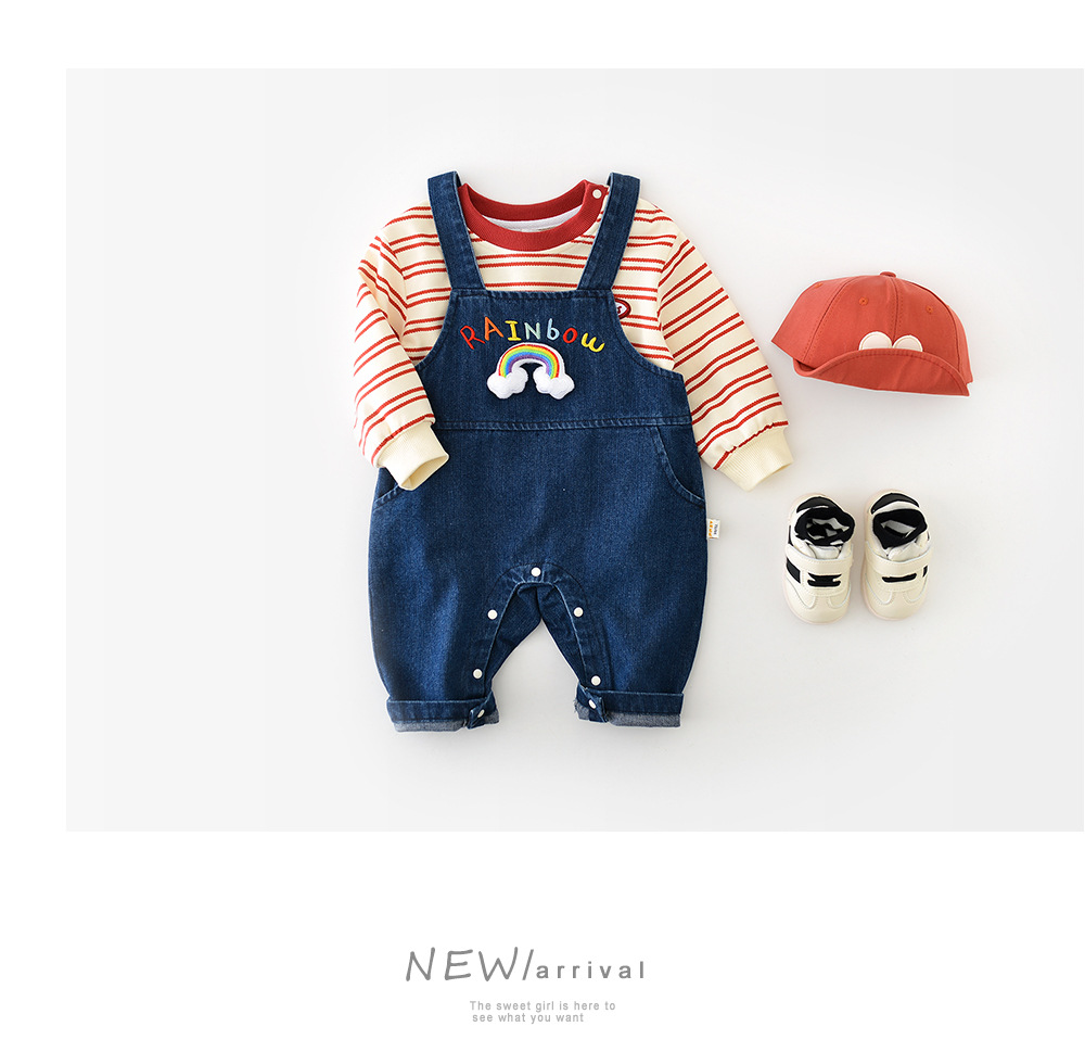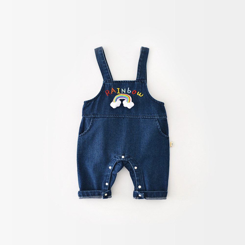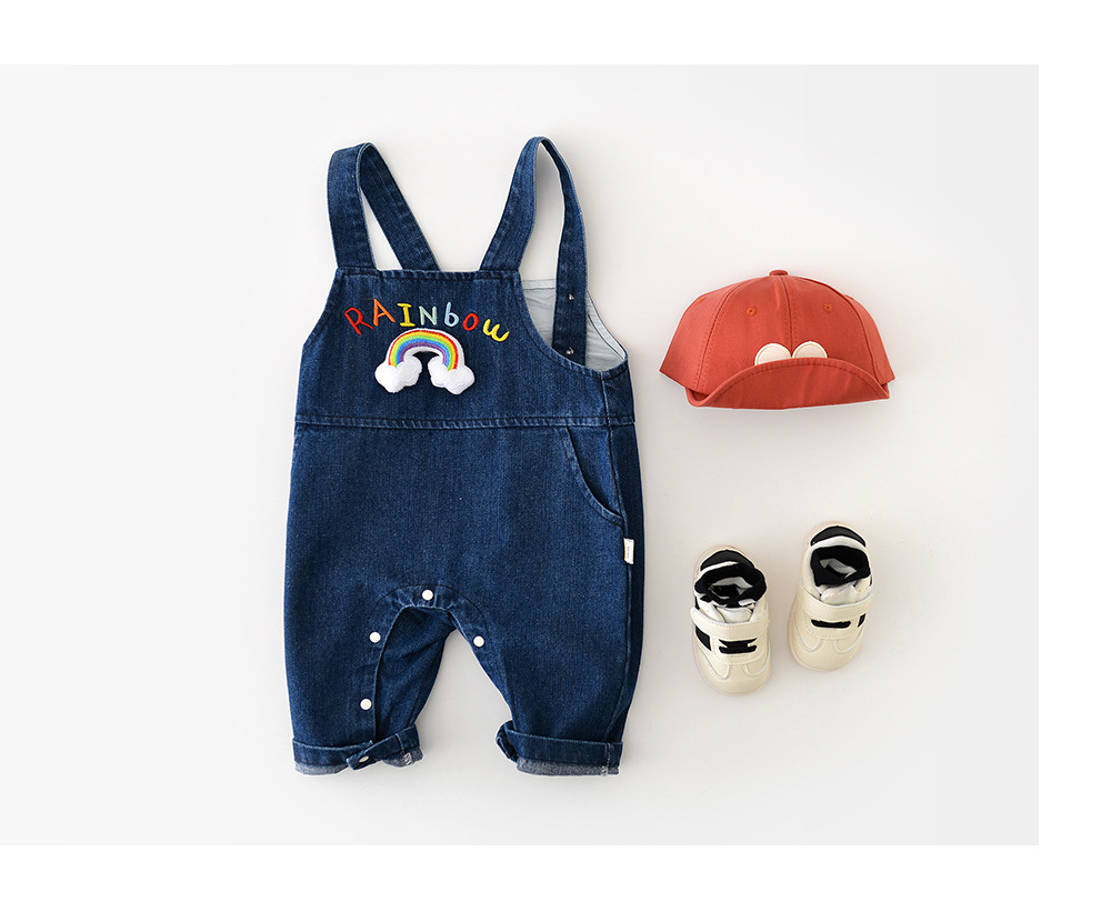 베이비 데님 레인보우 스트랩 바지 봄 어린이 0-3 여성용 캐주얼 데님 바지 51605