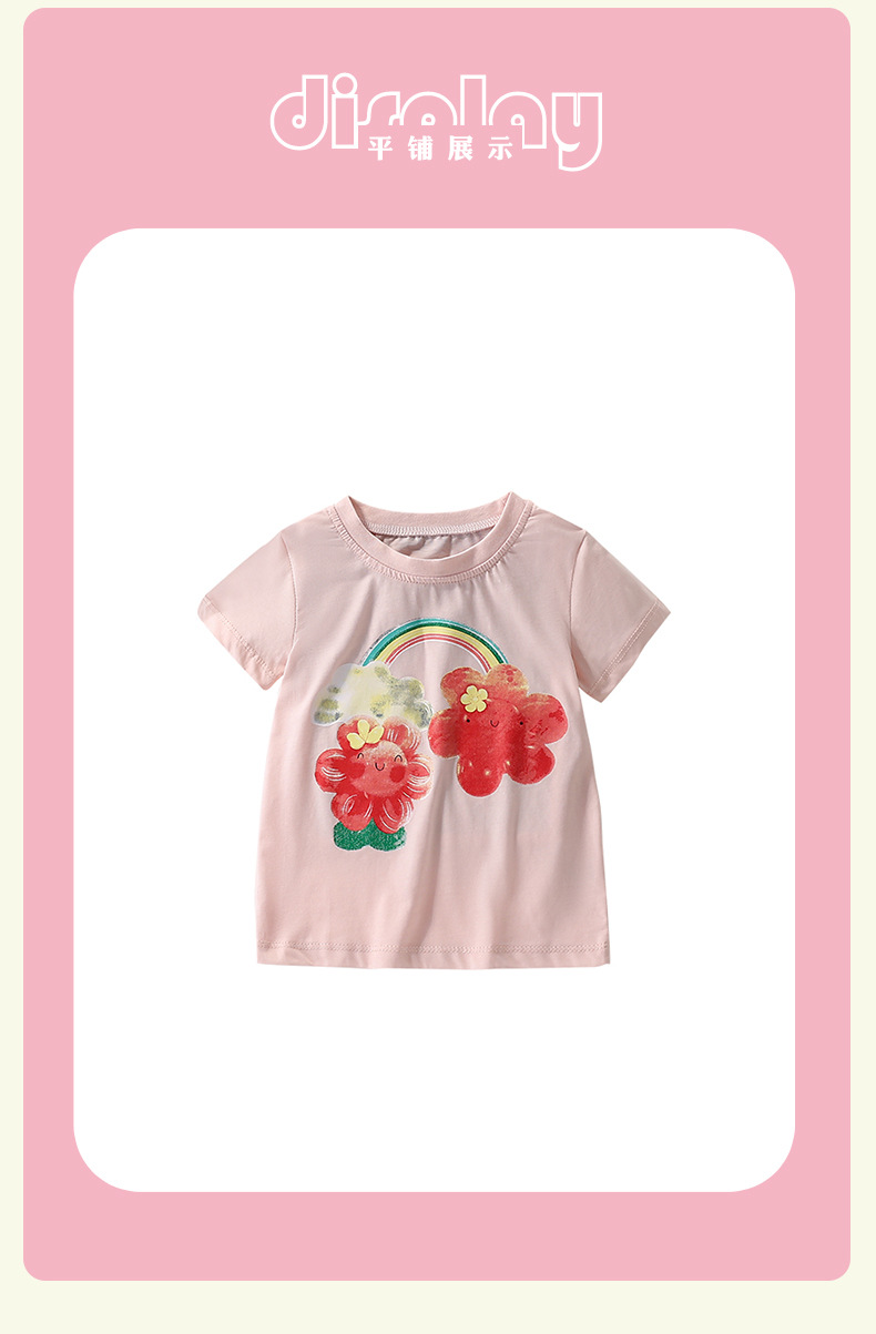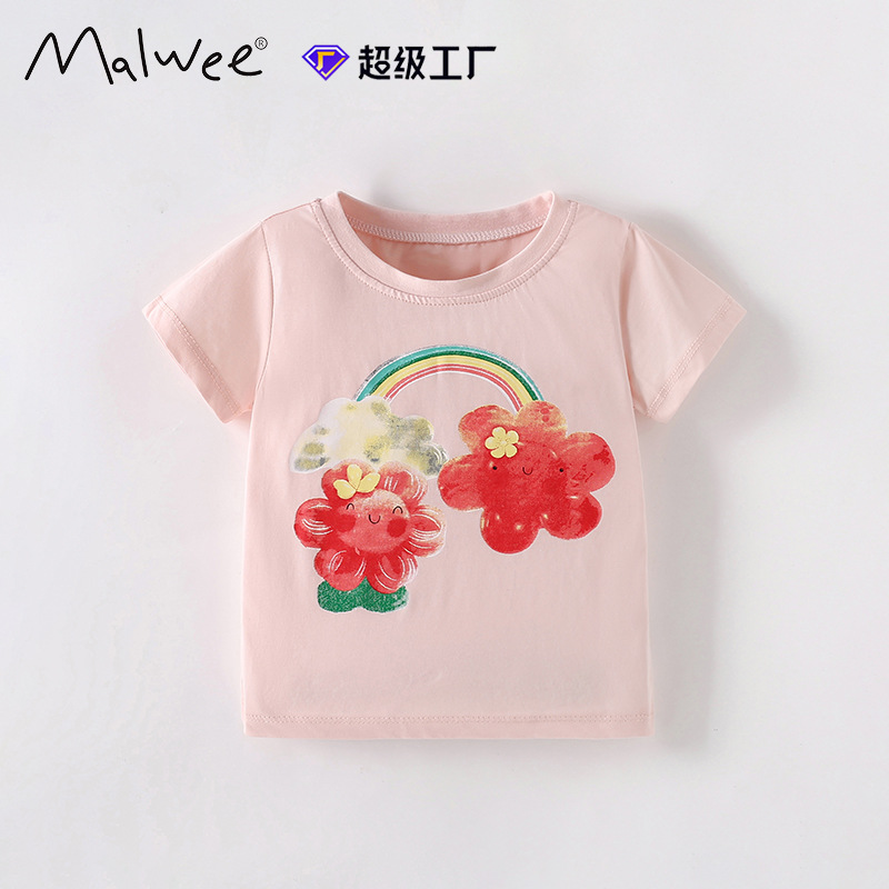 말위 소녀 티셔츠 여름 새로운 유럽과 미국 어린이 둥근 목 인쇄 귀여운 짧은 소매 어린이 캐주얼 옷스토어 가기