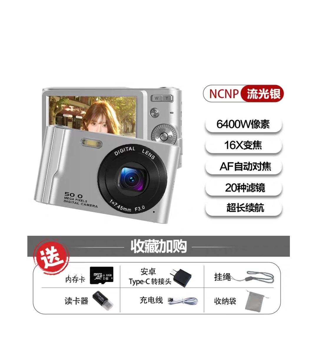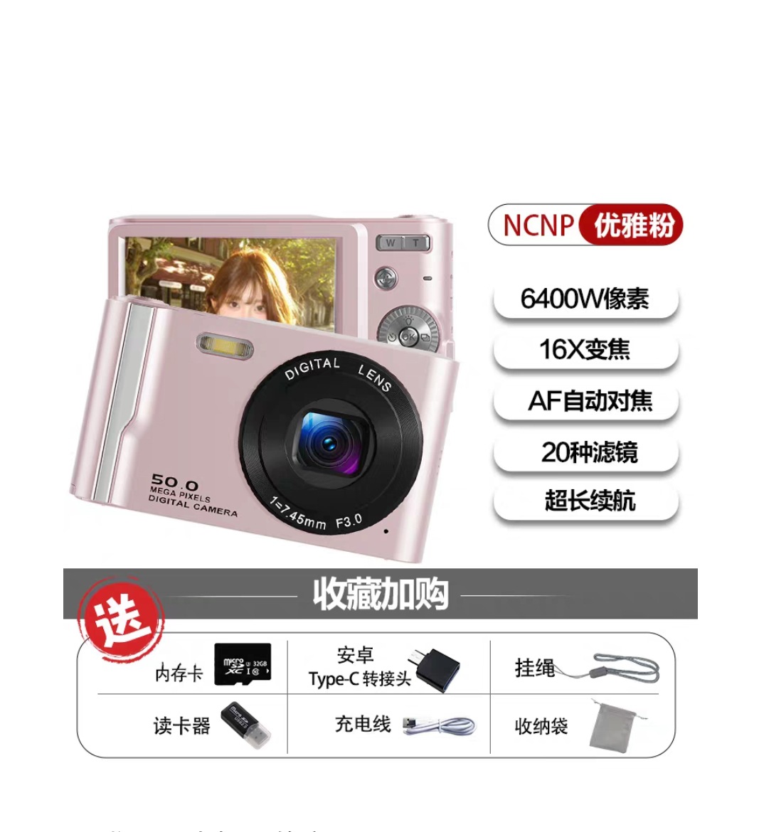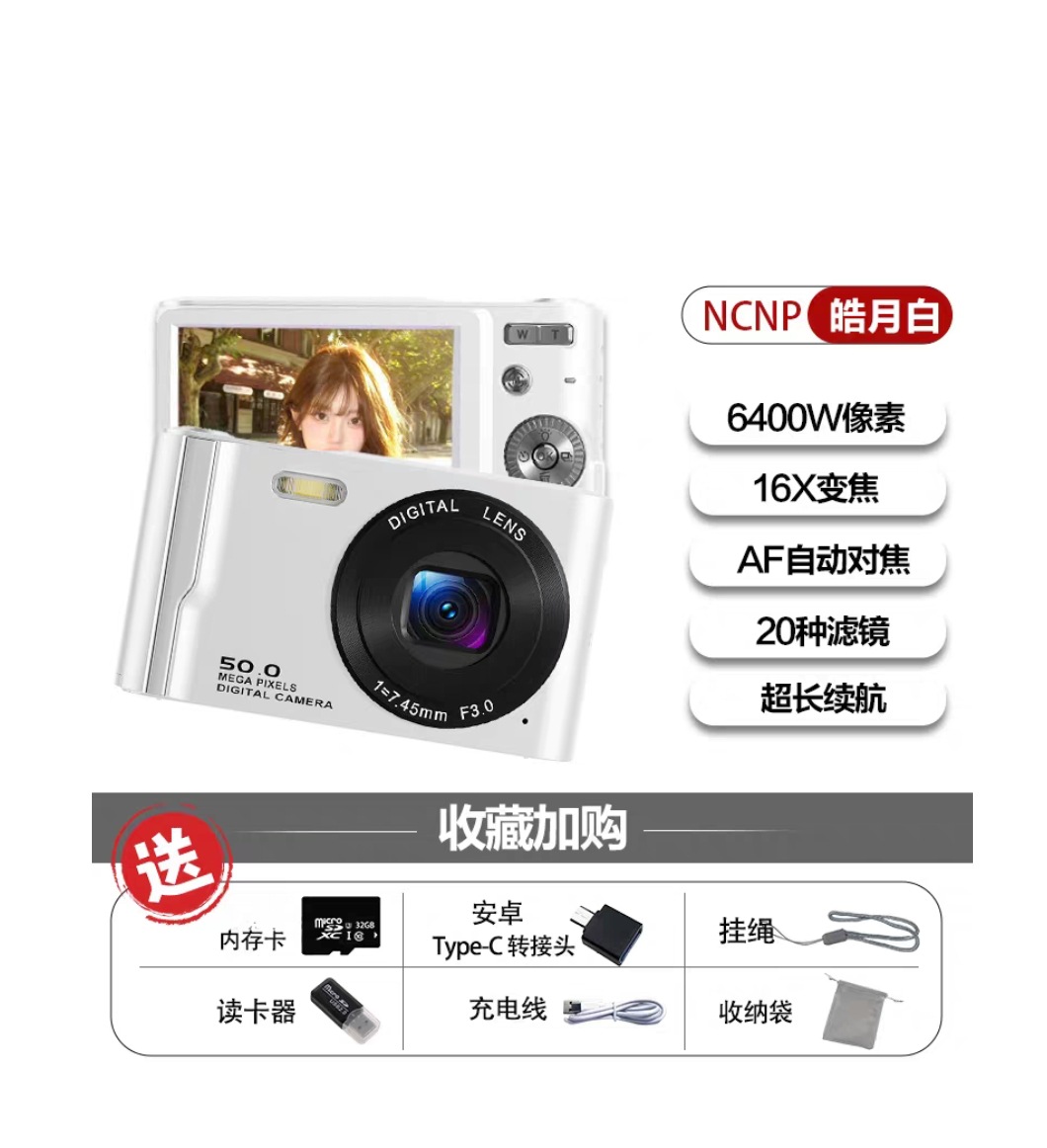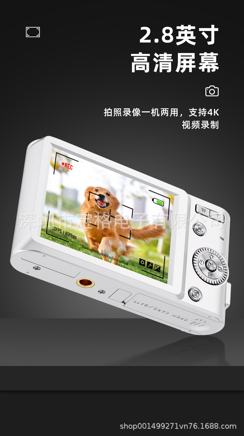 국경을 넘는 신제품 고화질 4K 디지털 카메라, 학생용 카메라, 여성용 휴대용 소형 카드형 카메라, 레트로 CCD스토어 가기