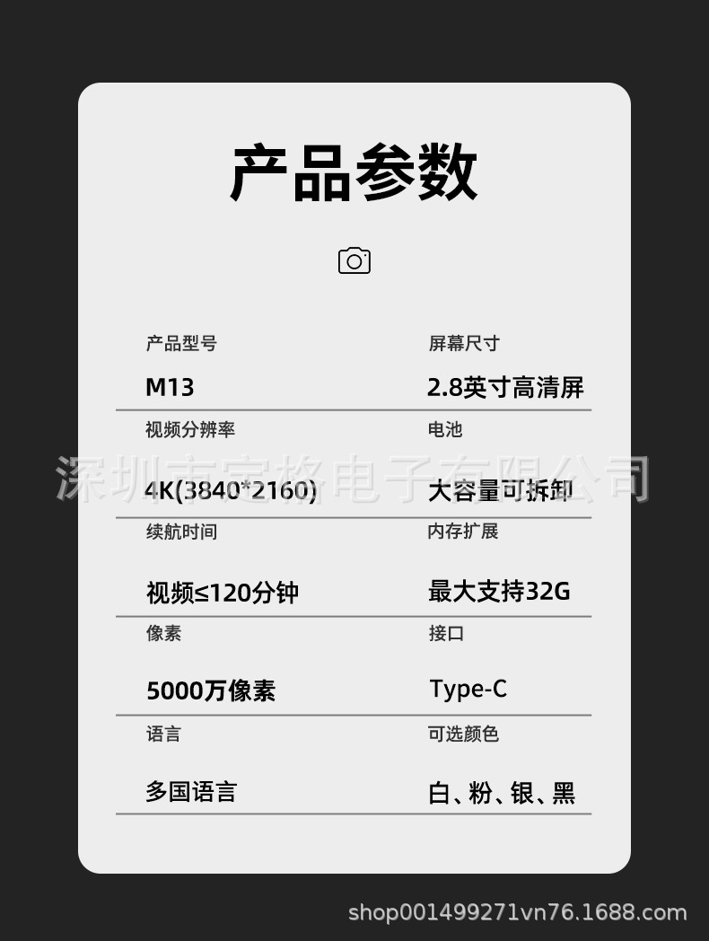 국경을 넘는 신제품 고화질 4K 디지털 카메라, 학생용 카메라, 여성용 휴대용 소형 카드형 카메라, 레트로 CCD