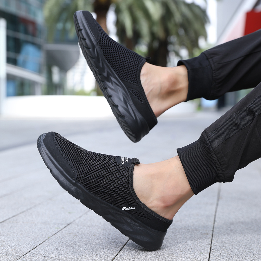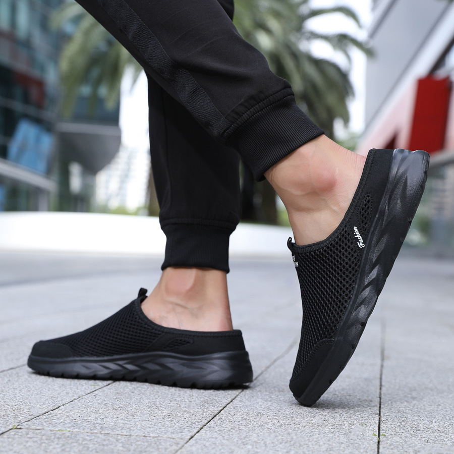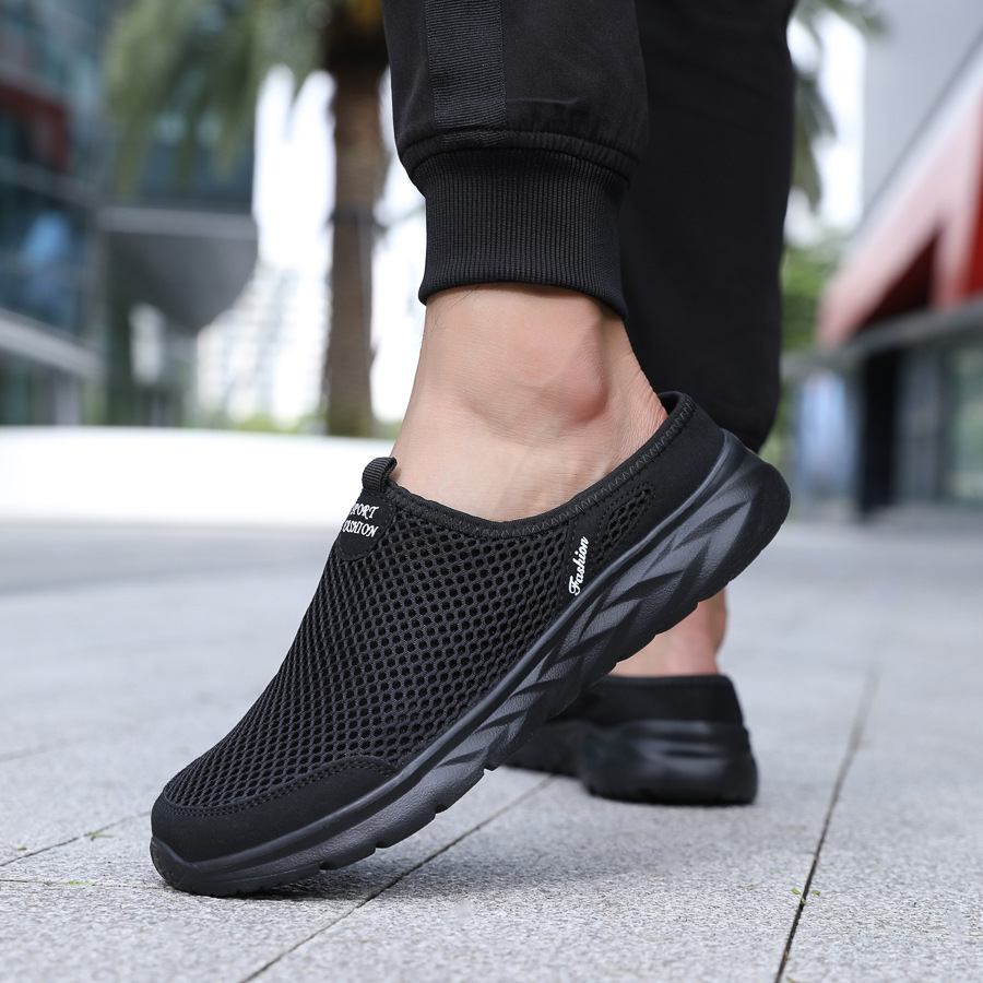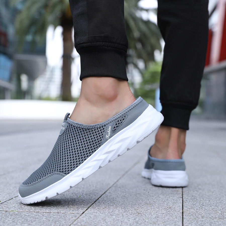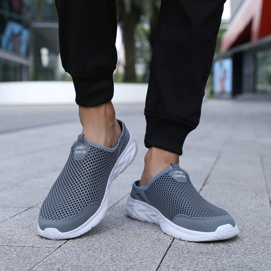 여름 메쉬 남성 하프 슬리퍼 캐주얼 통기성 캐주얼 신발 대형 소프트 솔 중공 트렌드 남성 크로스 보더 운동화스토어 가기
