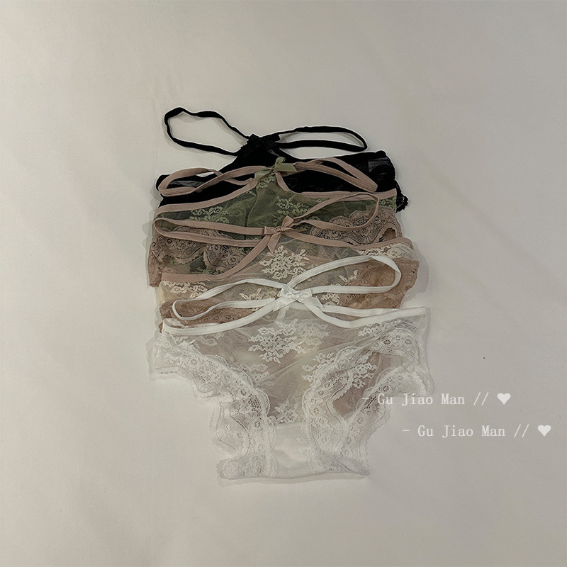 순수한 섹시한 프랑스 레이스 속옷 여성의 섹시한 반투명 메쉬 크로스 스트랩 퓨어 코튼 소녀의 브리프스토어 가기