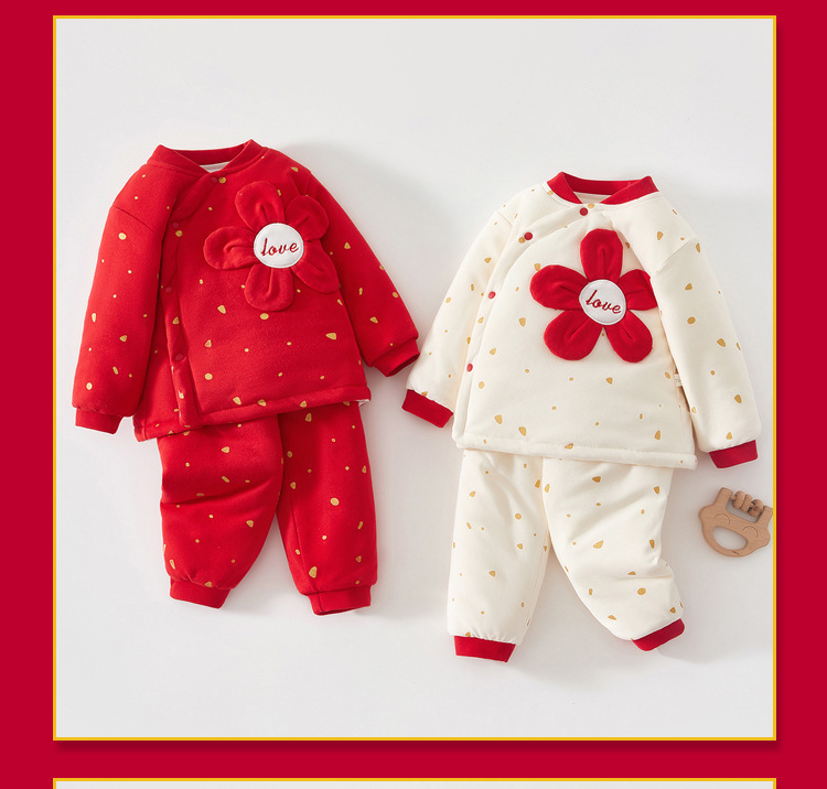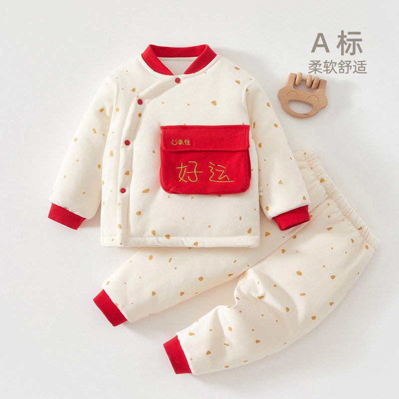 면화 세트 유형을 가진 아기의 가을과 겨울 옷 순수한 면화 아기의 겨울 옷 두꺼운 따뜻한 면화 옷 겨울 나가는 옷