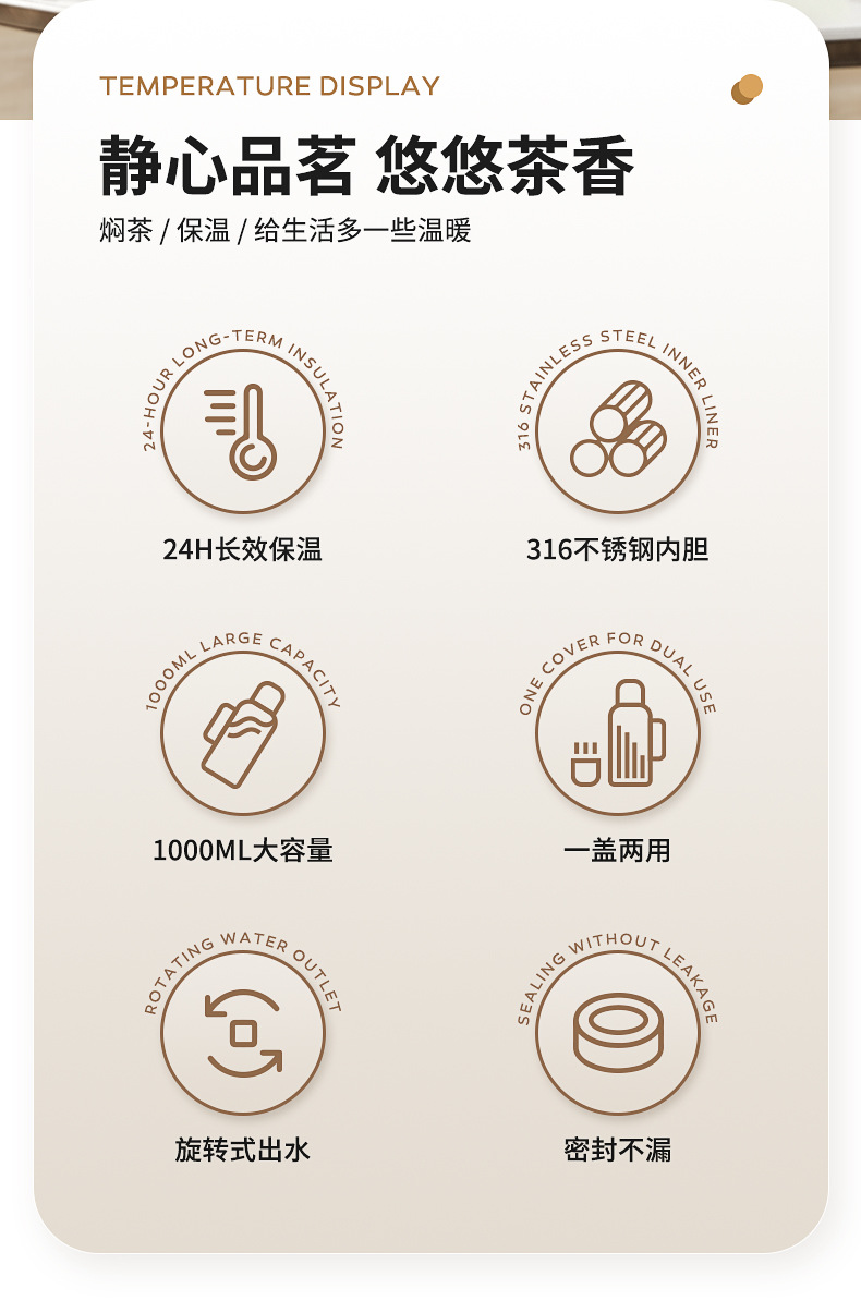 기계식 내부 코어 스튜 주전자, 복고풍 스타일의 지능형 온도 표시 316 보온병 컵, 남성용 대용량 백차 스튜 주전자스토어 가기