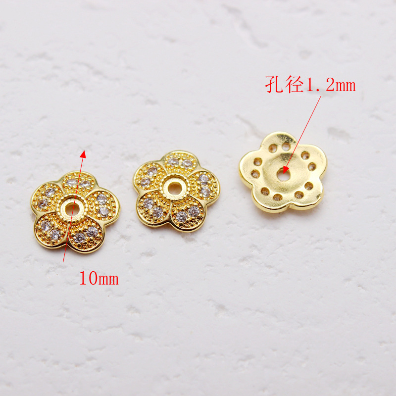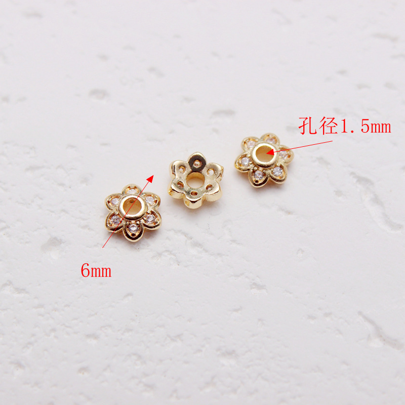 18K包金保色镶锆花朵花托隔片手工diy串珍珠手链项链饰品配件