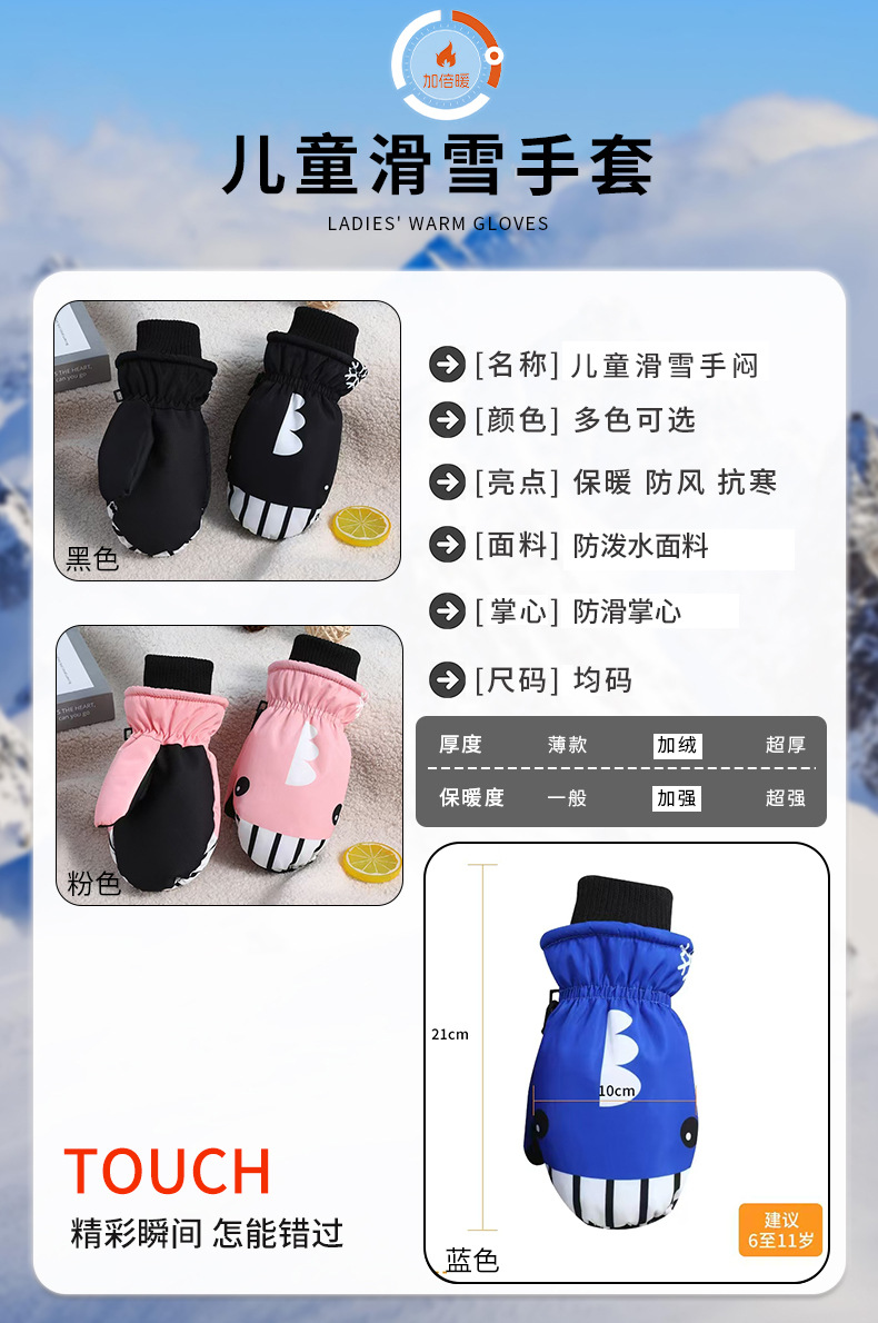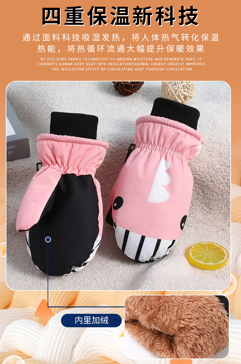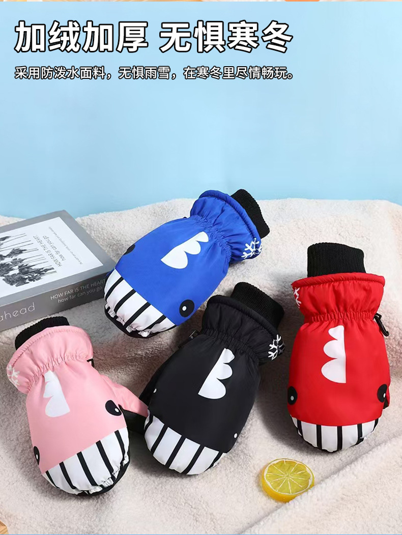 도매 겨울 어린이 스키 장갑 만화 플러스 벨벳 두꺼운 남성과 여성 장갑 방풍 야외 스포츠 따뜻한 장갑