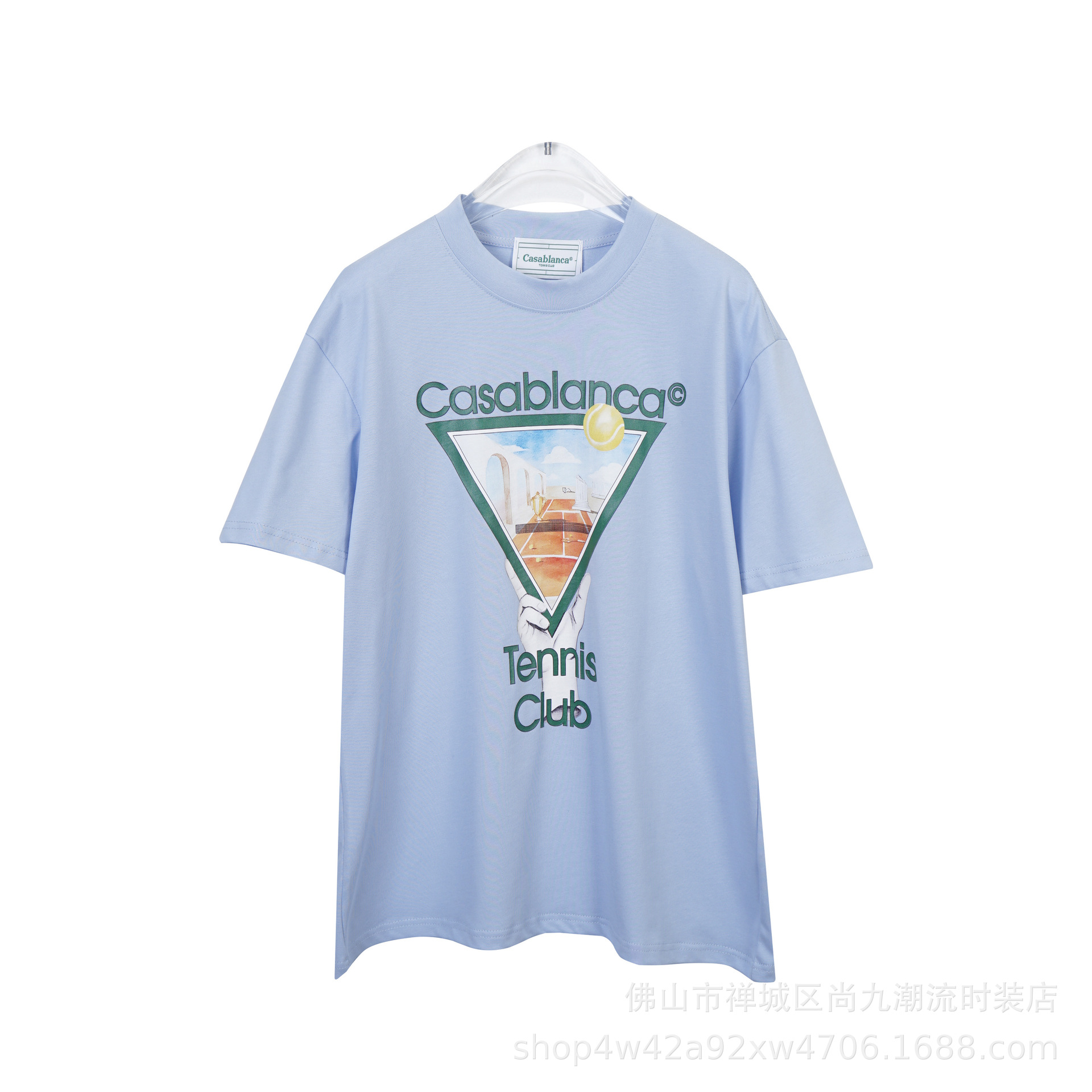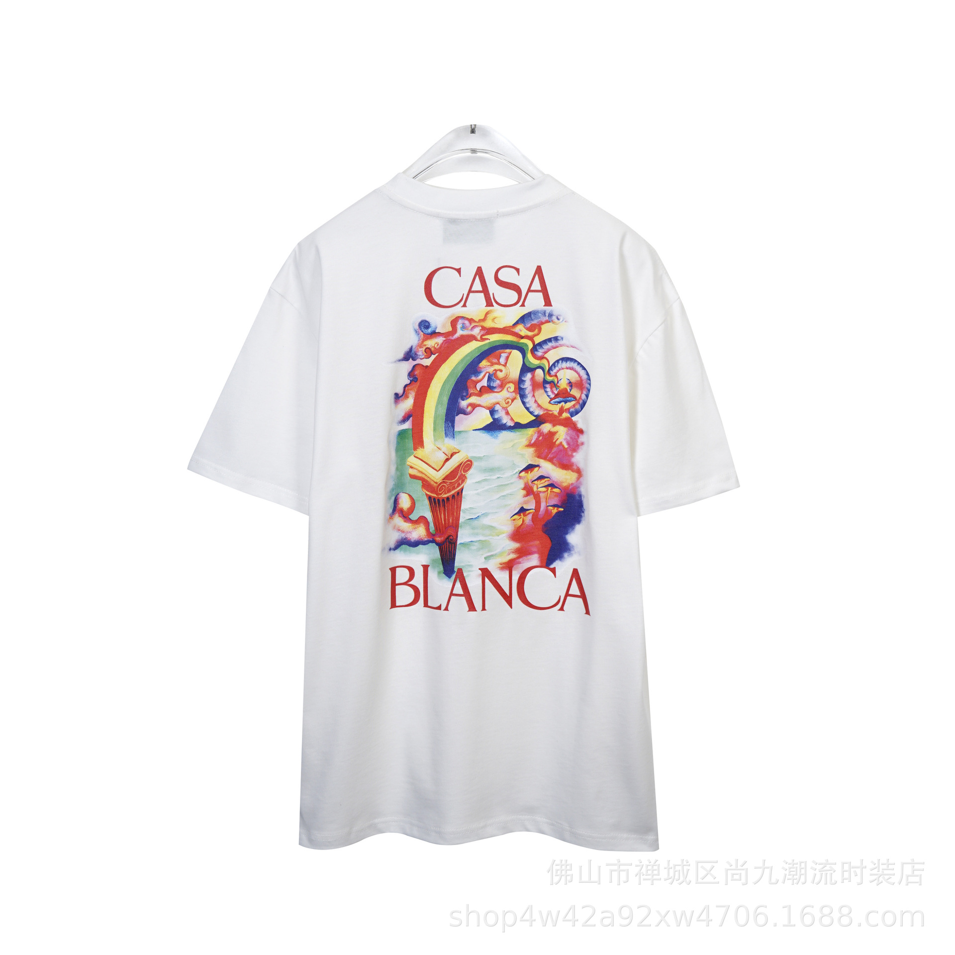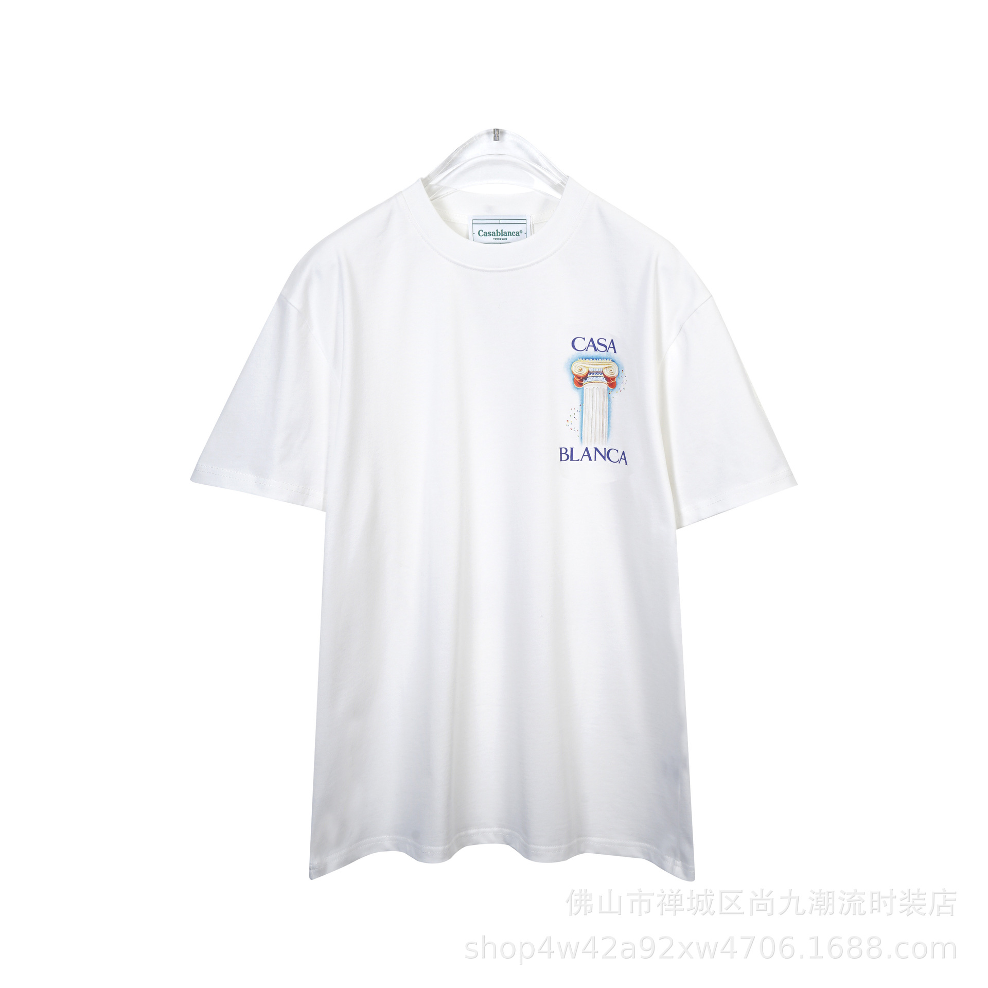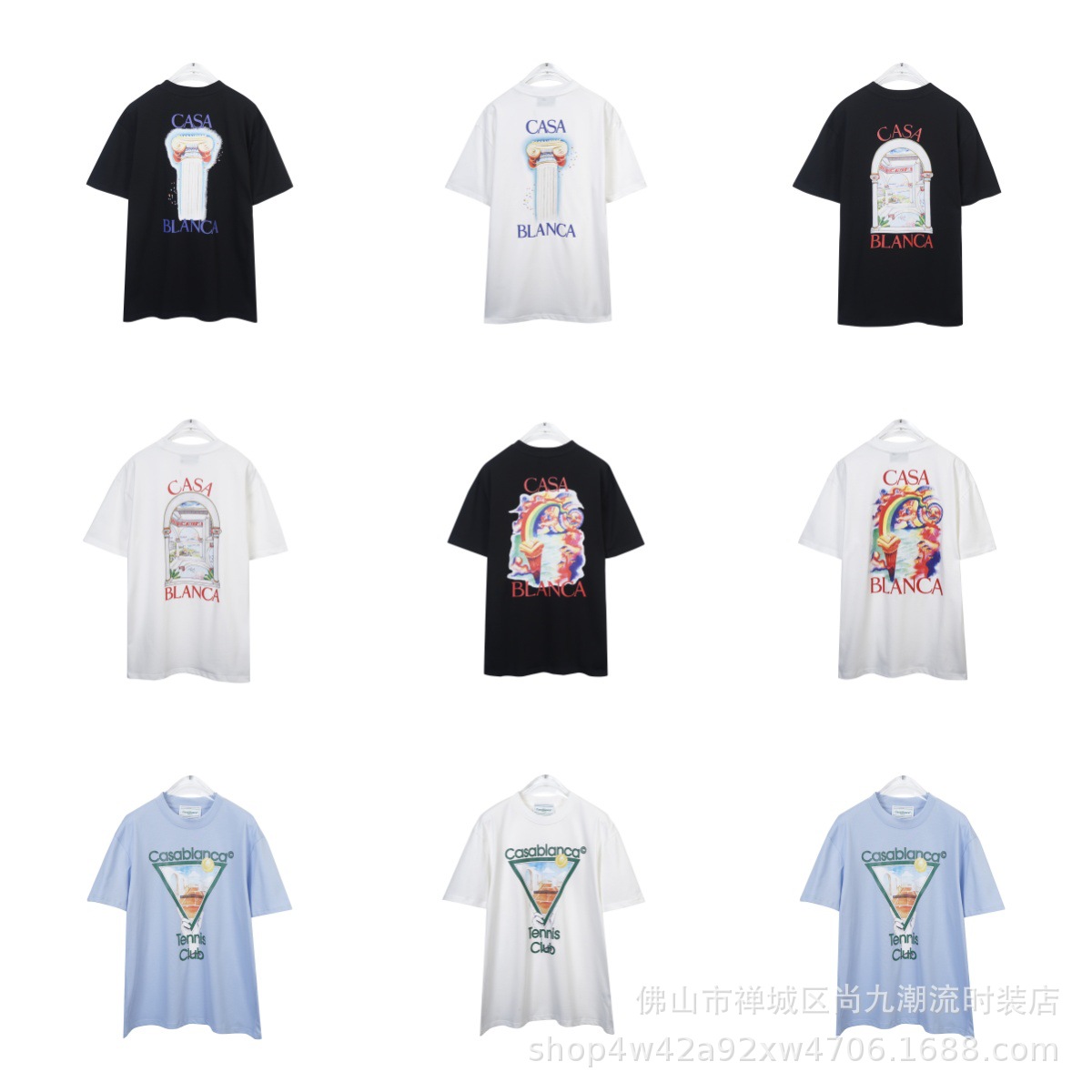 카사 블랑카 25SS 새 편지 로고 인쇄 낙서 짧은 소매 T 느슨한 플러스 사이즈 남성과 여성의 티셔츠스토어 가기