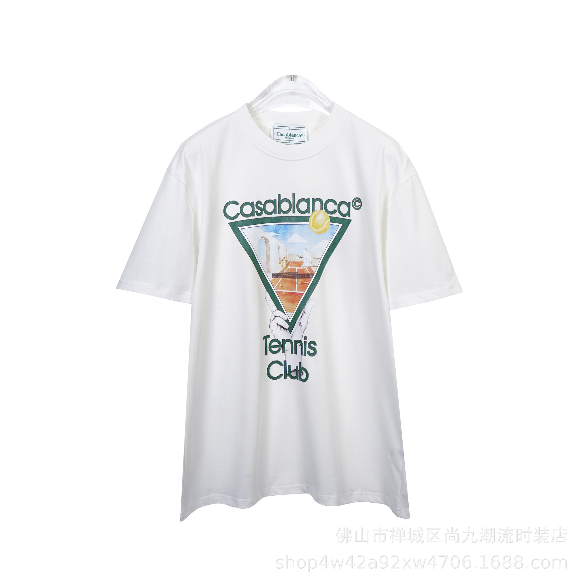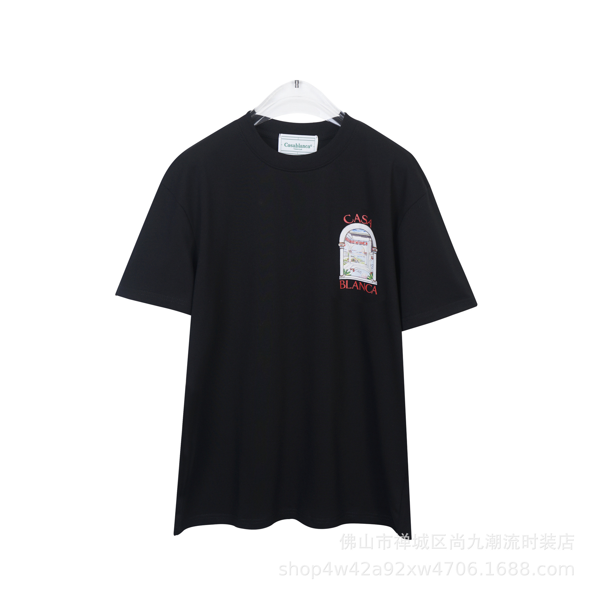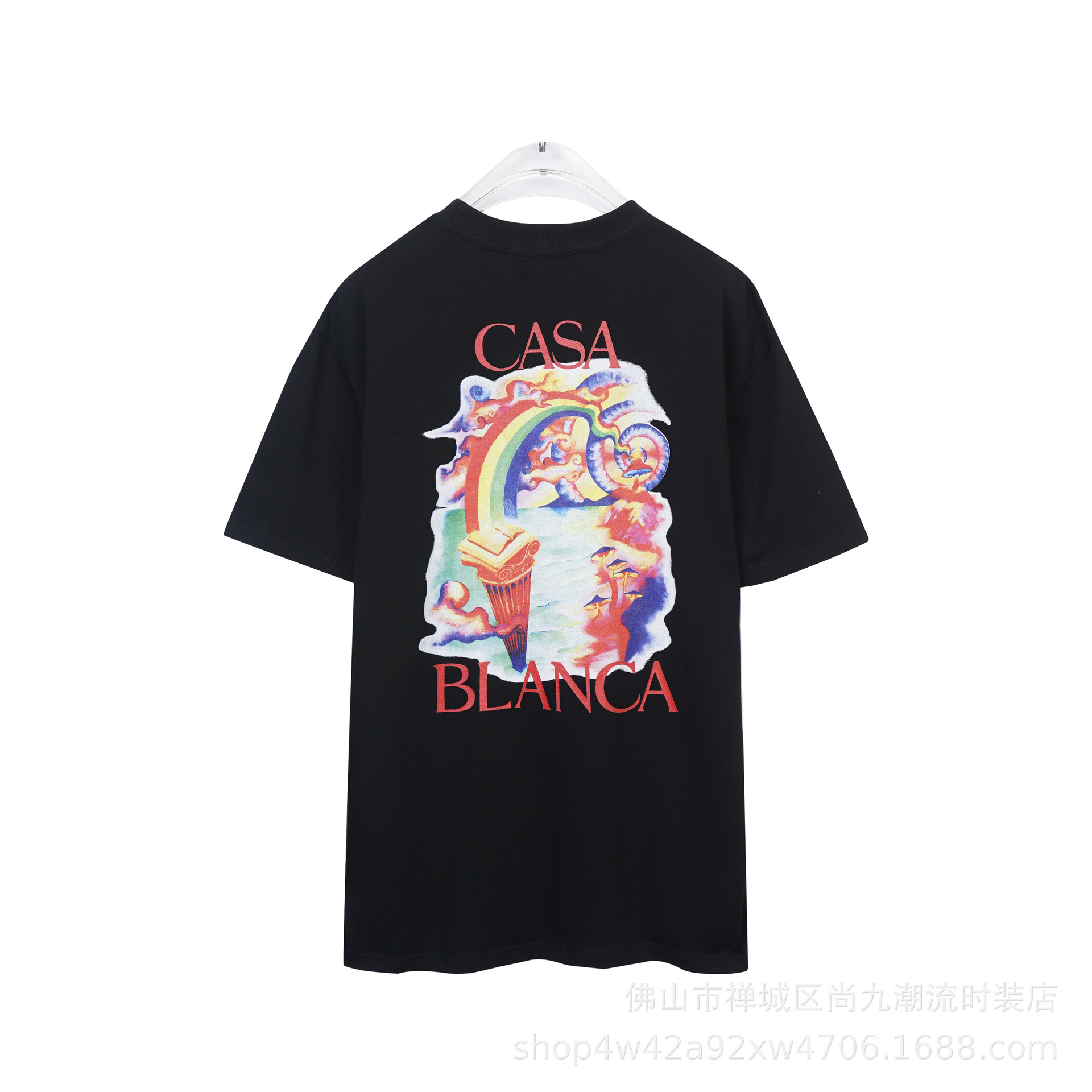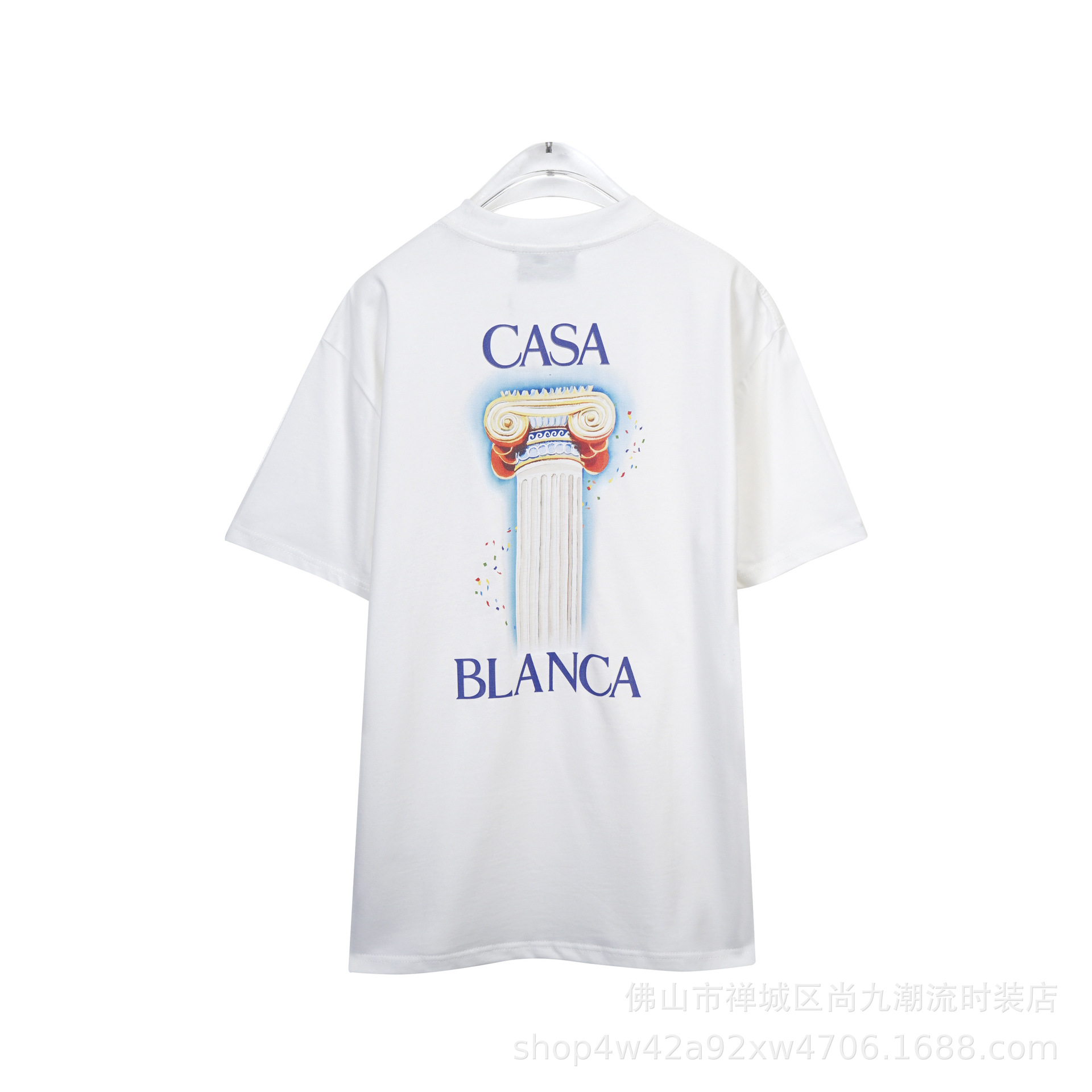 카사 블랑카 25SS 새 편지 로고 인쇄 낙서 짧은 소매 T 느슨한 플러스 사이즈 남성과 여성의 티셔츠스토어 가기