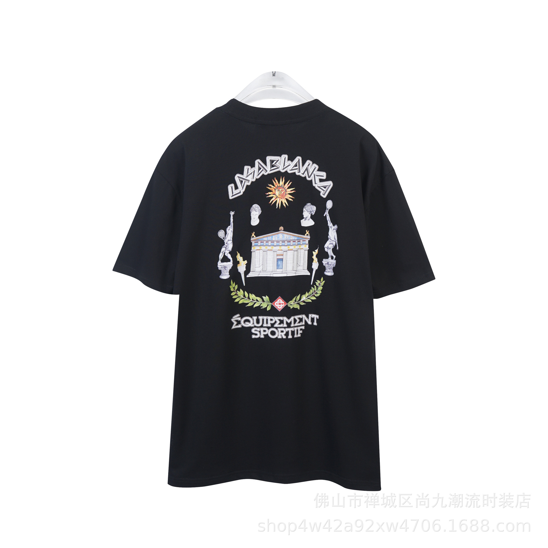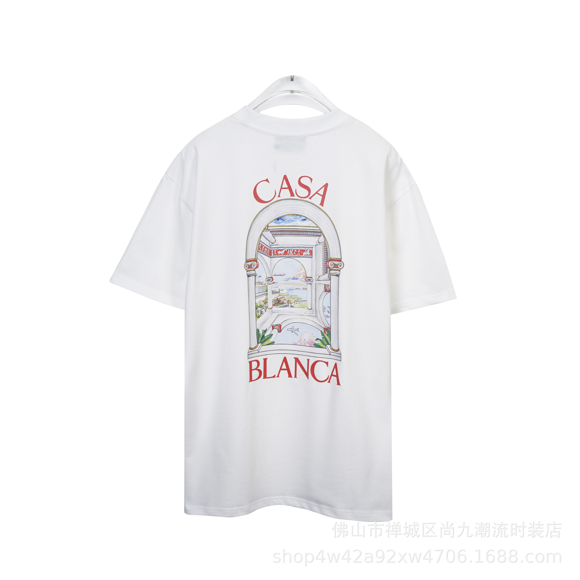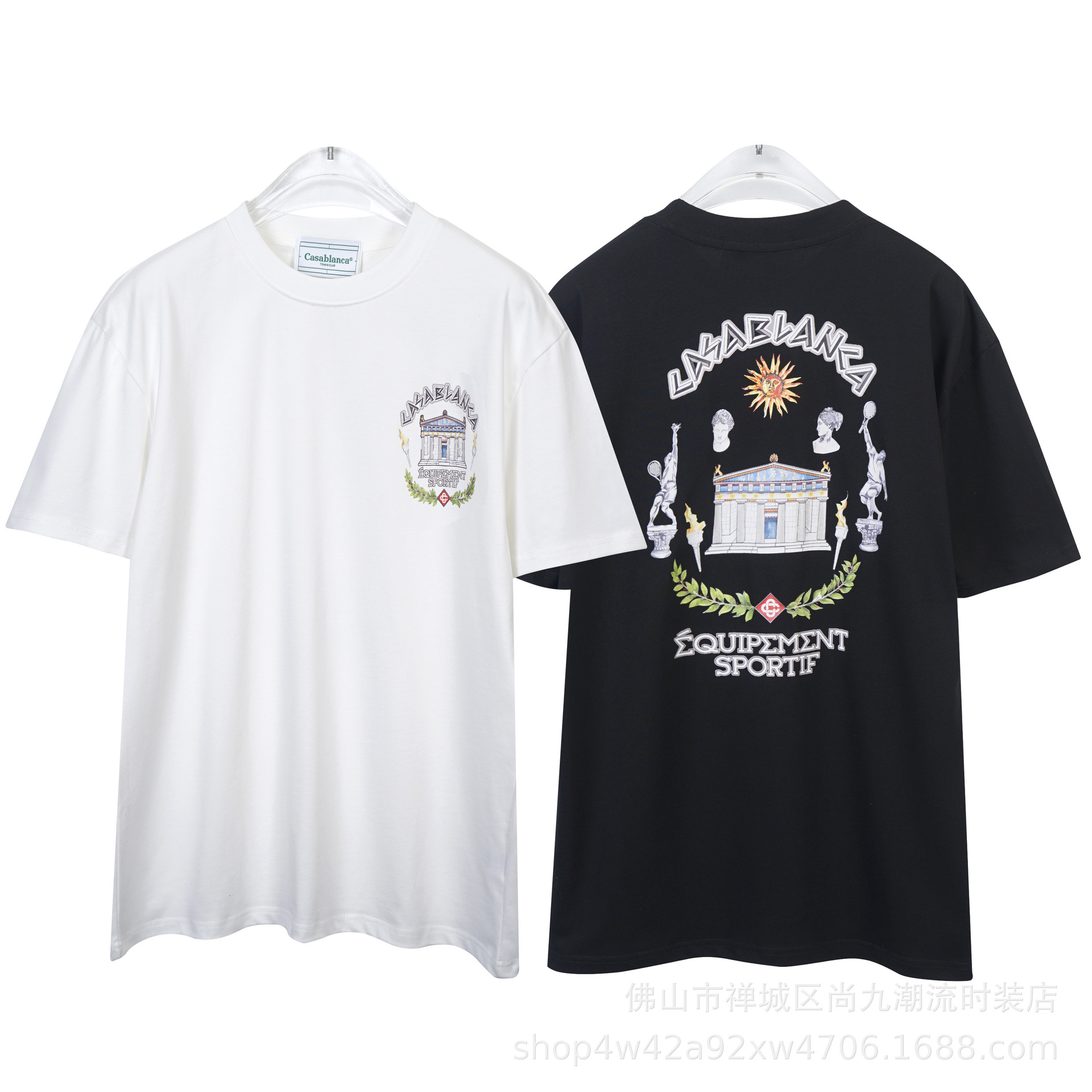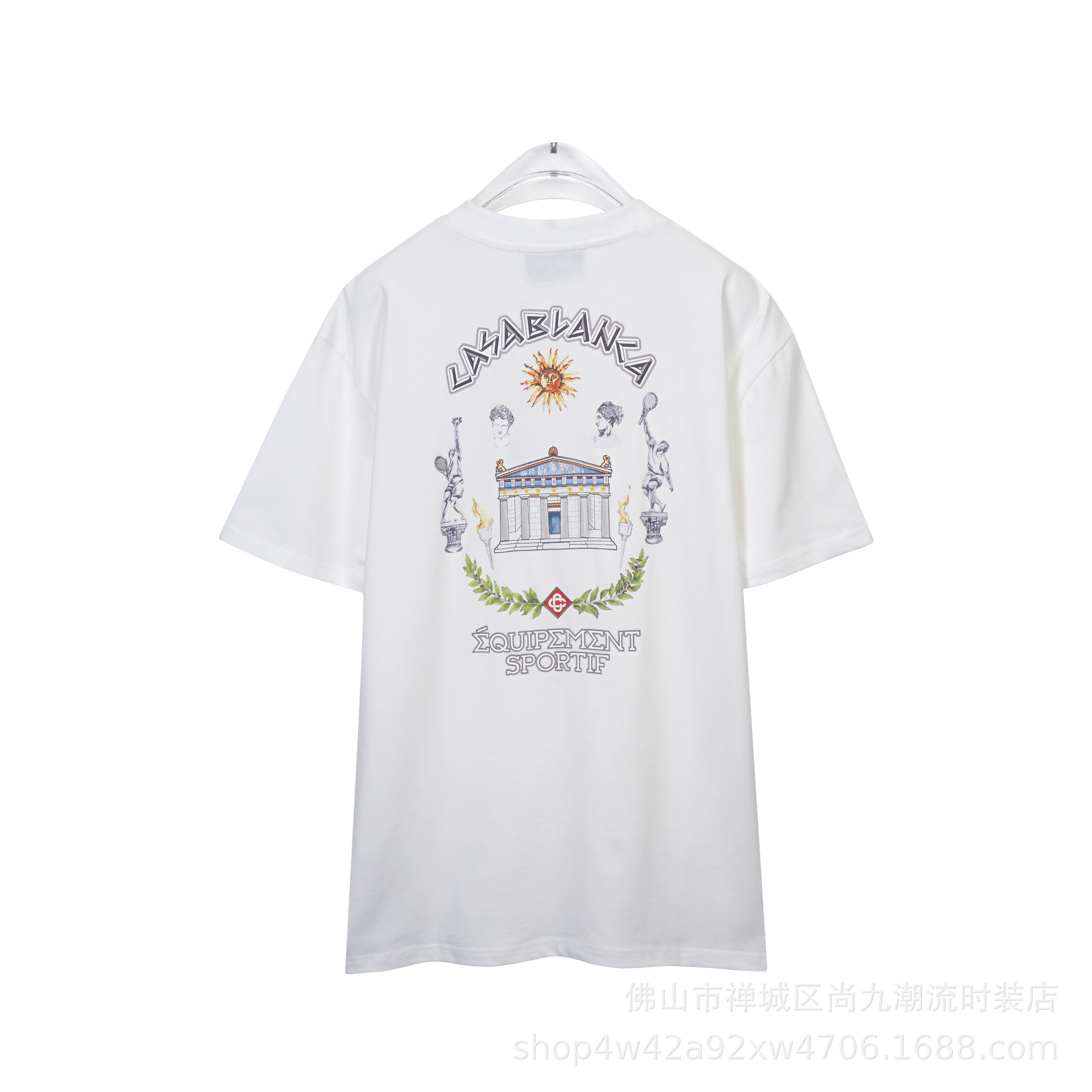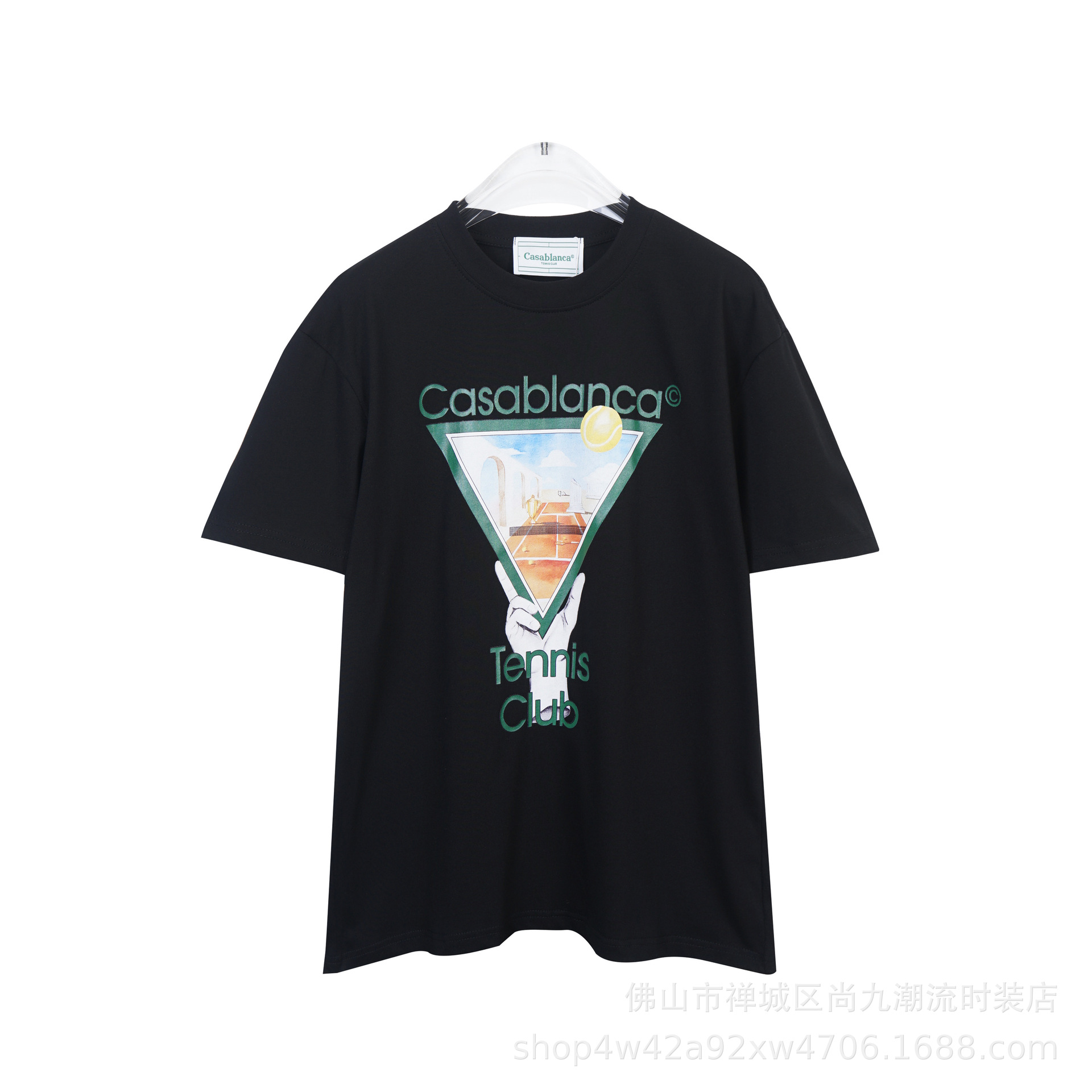 카사 블랑카 25SS 새 편지 로고 인쇄 낙서 짧은 소매 T 느슨한 플러스 사이즈 남성과 여성의 티셔츠스토어 가기