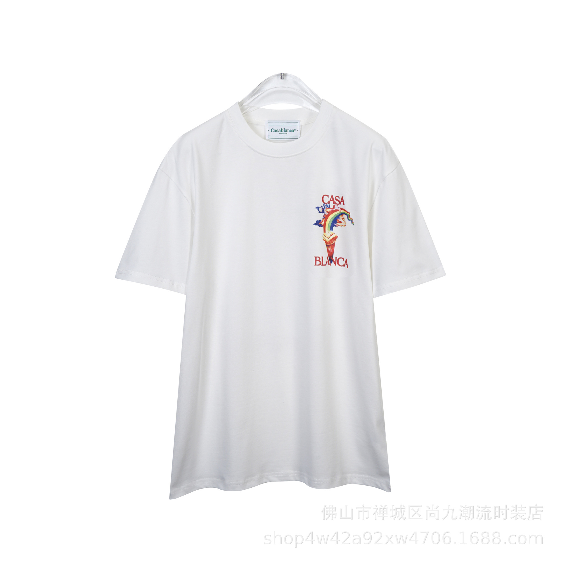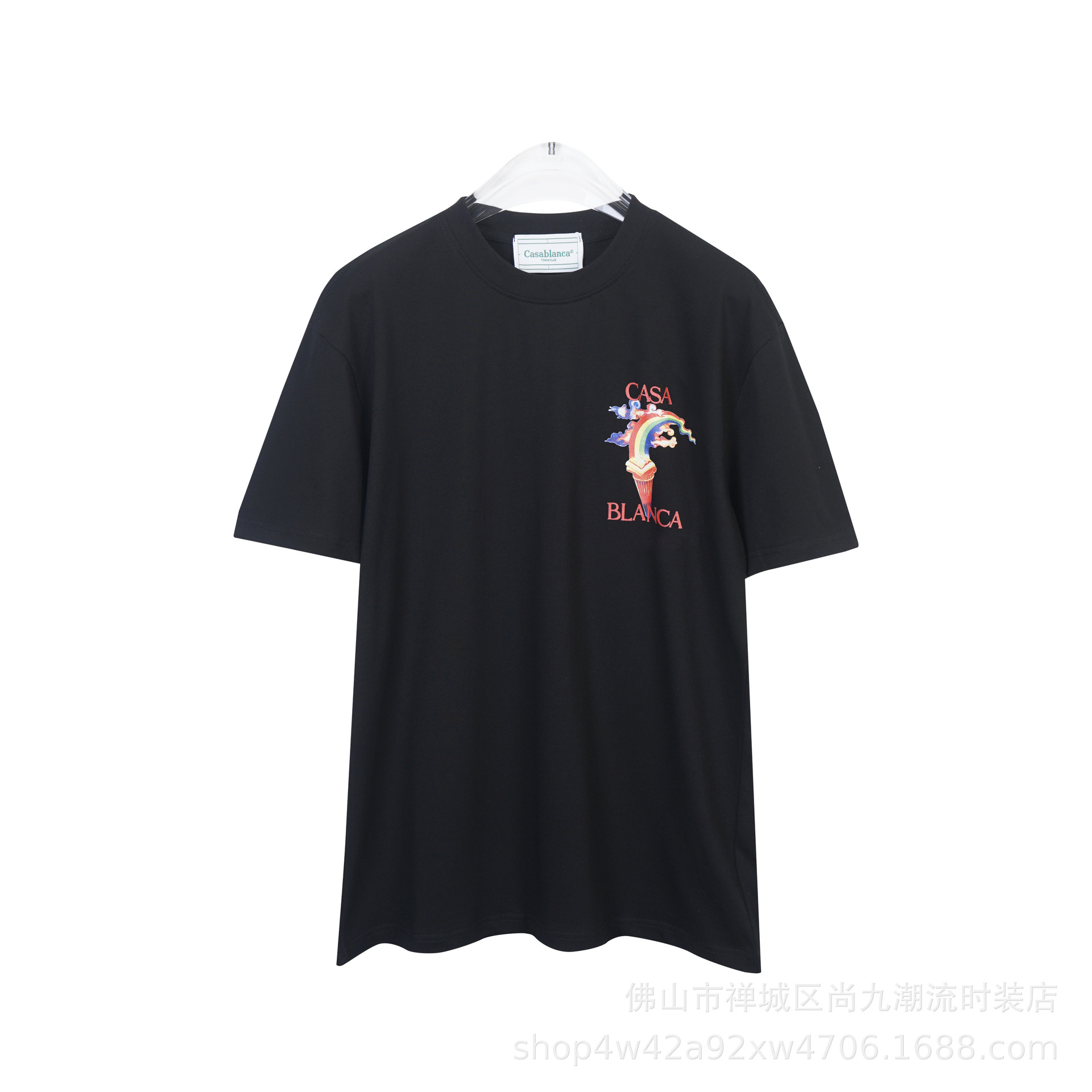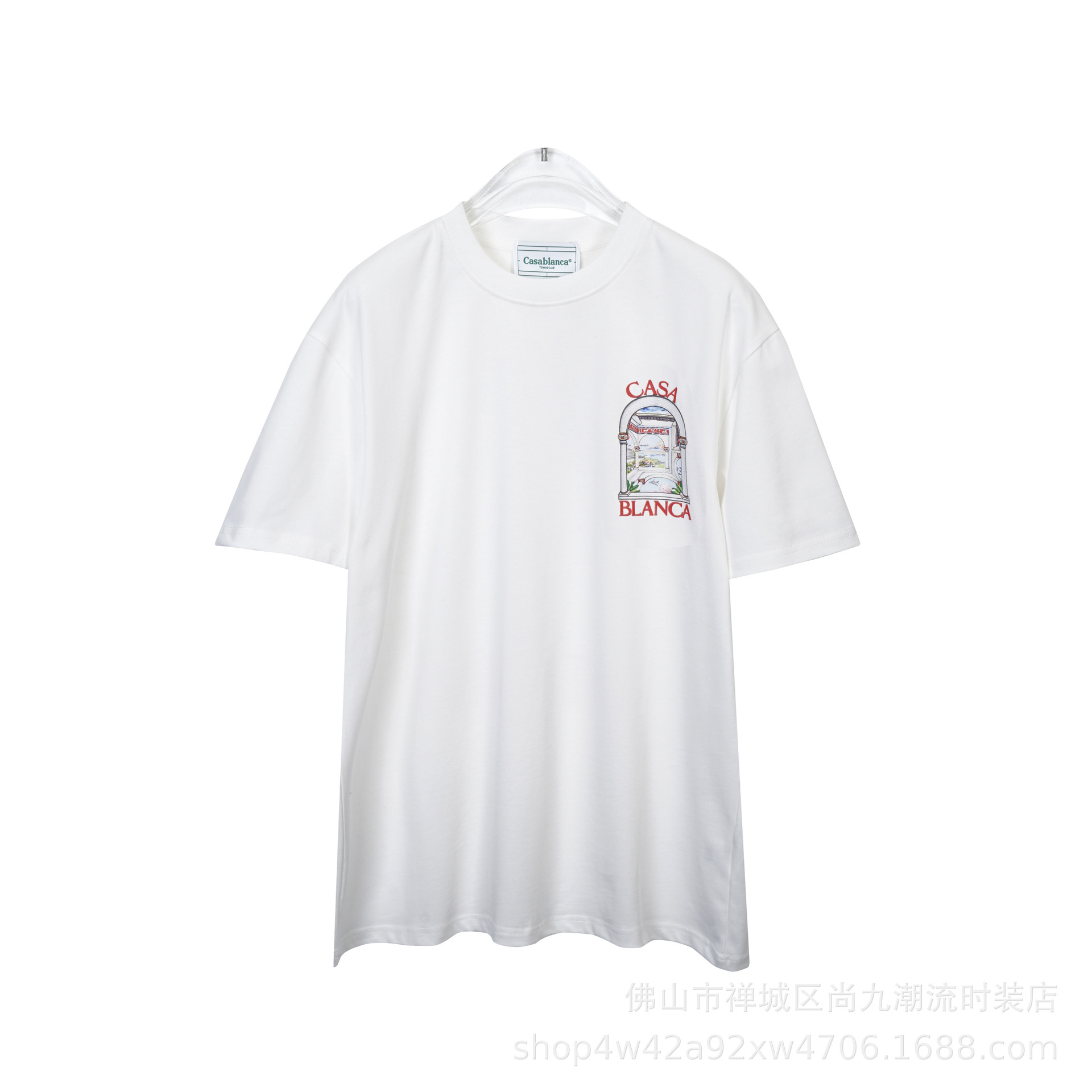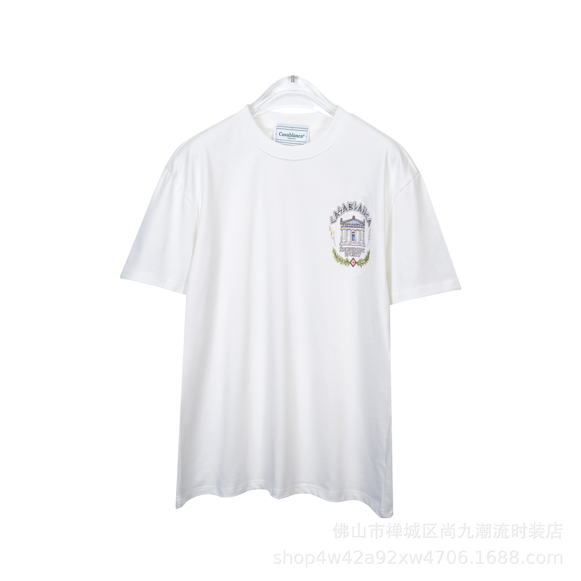 카사 블랑카 25SS 새 편지 로고 인쇄 낙서 짧은 소매 T 느슨한 플러스 사이즈 남성과 여성의 티셔츠스토어 가기