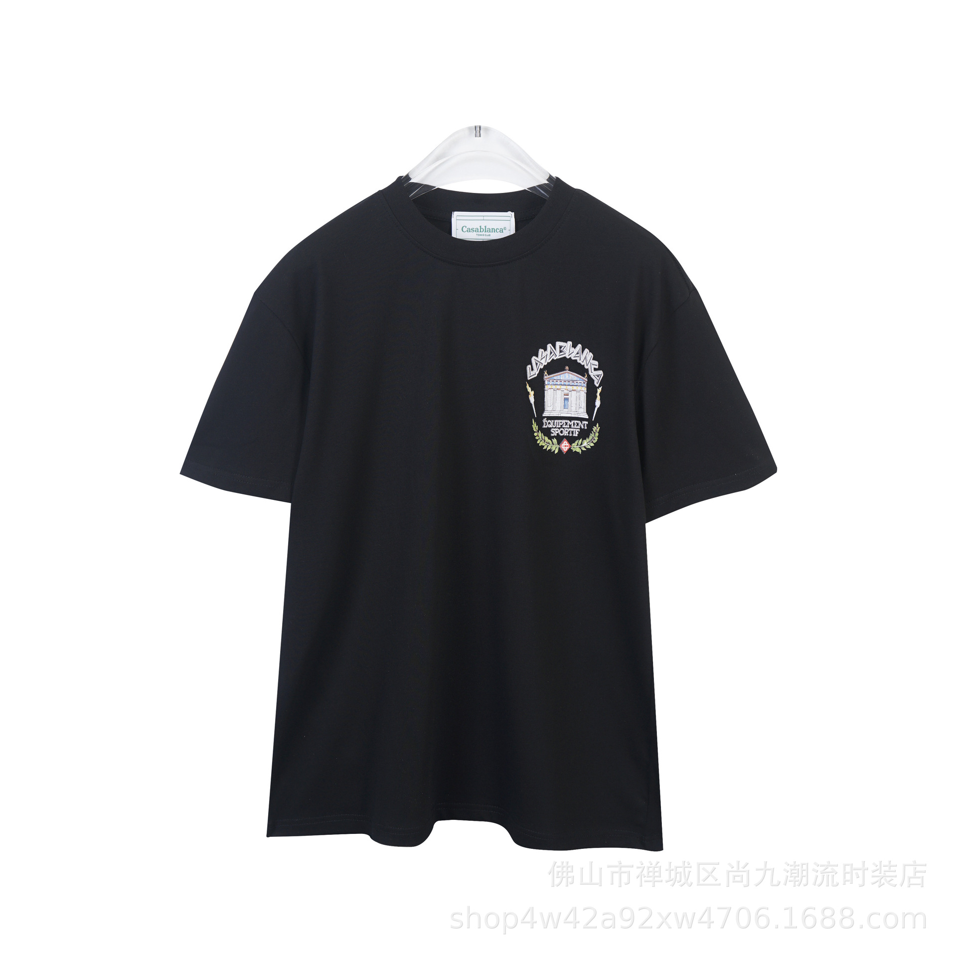 카사 블랑카 25SS 새 편지 로고 인쇄 낙서 짧은 소매 T 느슨한 플러스 사이즈 남성과 여성의 티셔츠