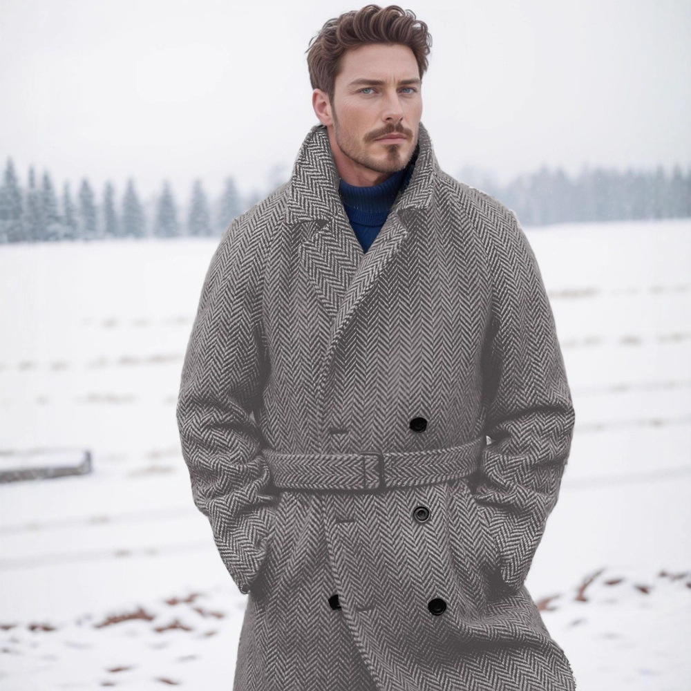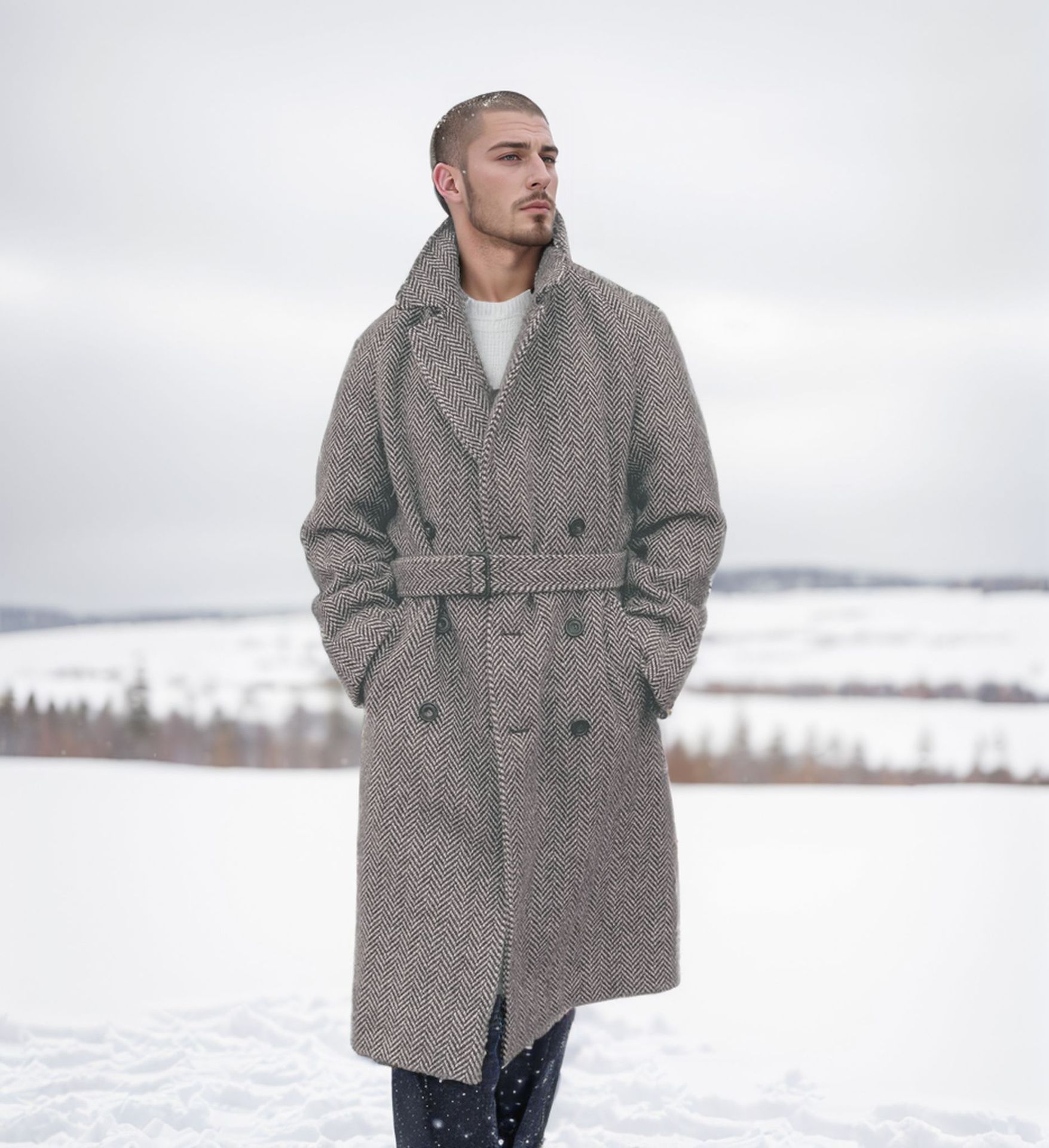 국경 간 재고 새로운 코트 가을과 겨울 남자 중간 길이의 양모 격자 양면 양면 두꺼운 코트 남성용