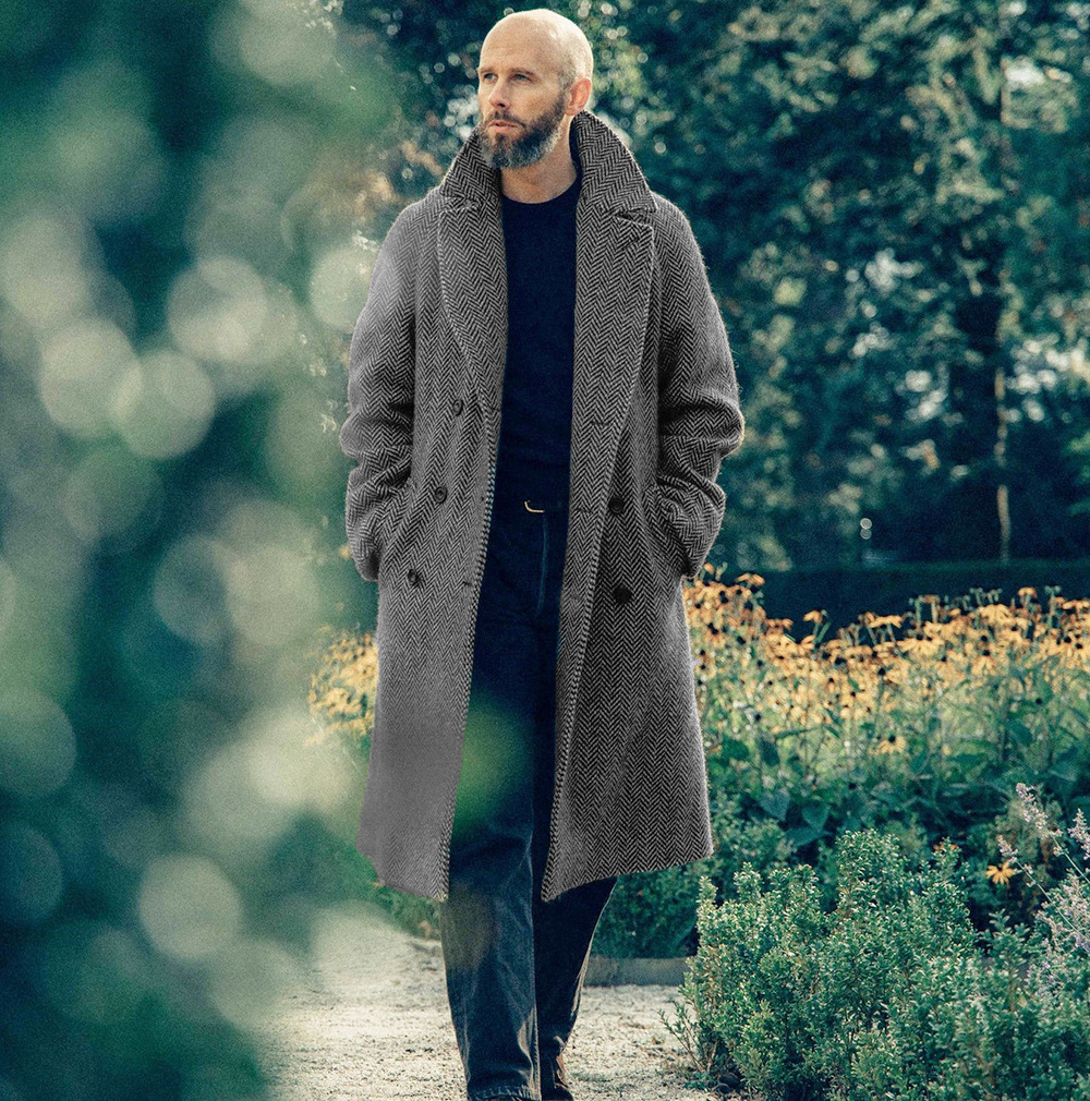 국경 간 재고 새로운 코트 가을과 겨울 남자 중간 길이의 양모 격자 양면 양면 두꺼운 코트 남성용스토어 가기