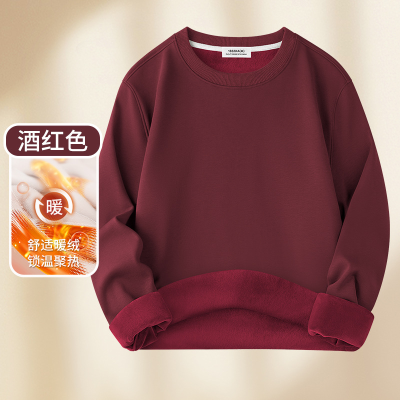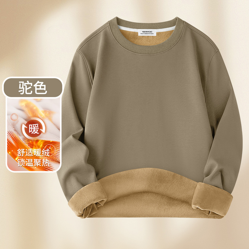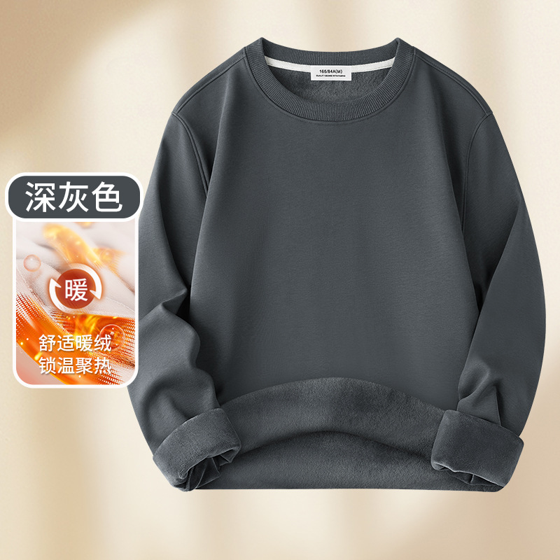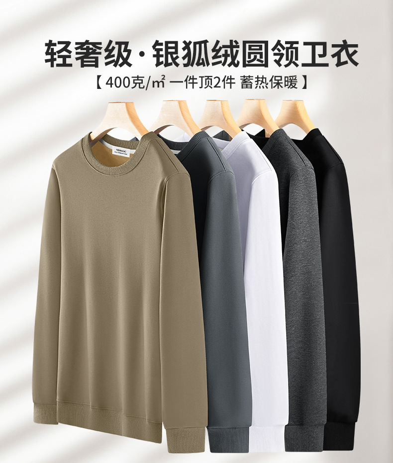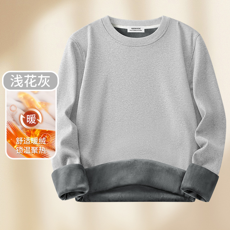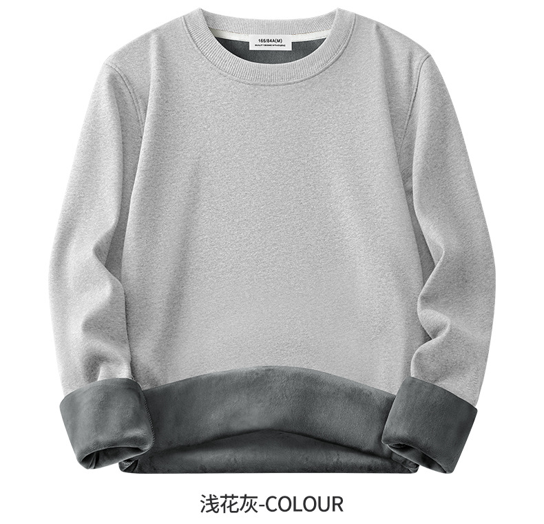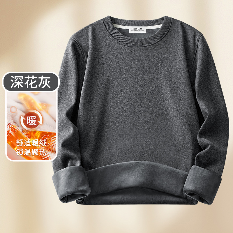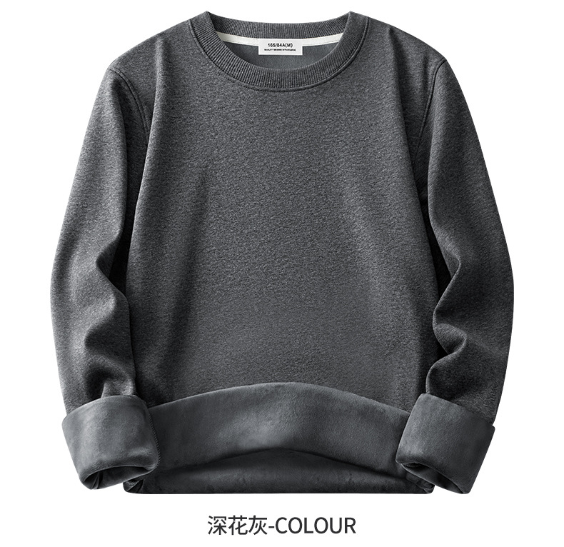 남성용 헤비급 실버 폭스 벨벳 따뜻한 스웨트 셔츠 남성용 가을, 겨울 벨벳 두꺼운 루즈 라운드 넥 솔리드 컬러 바닥 셔츠 탑스토어 가기
