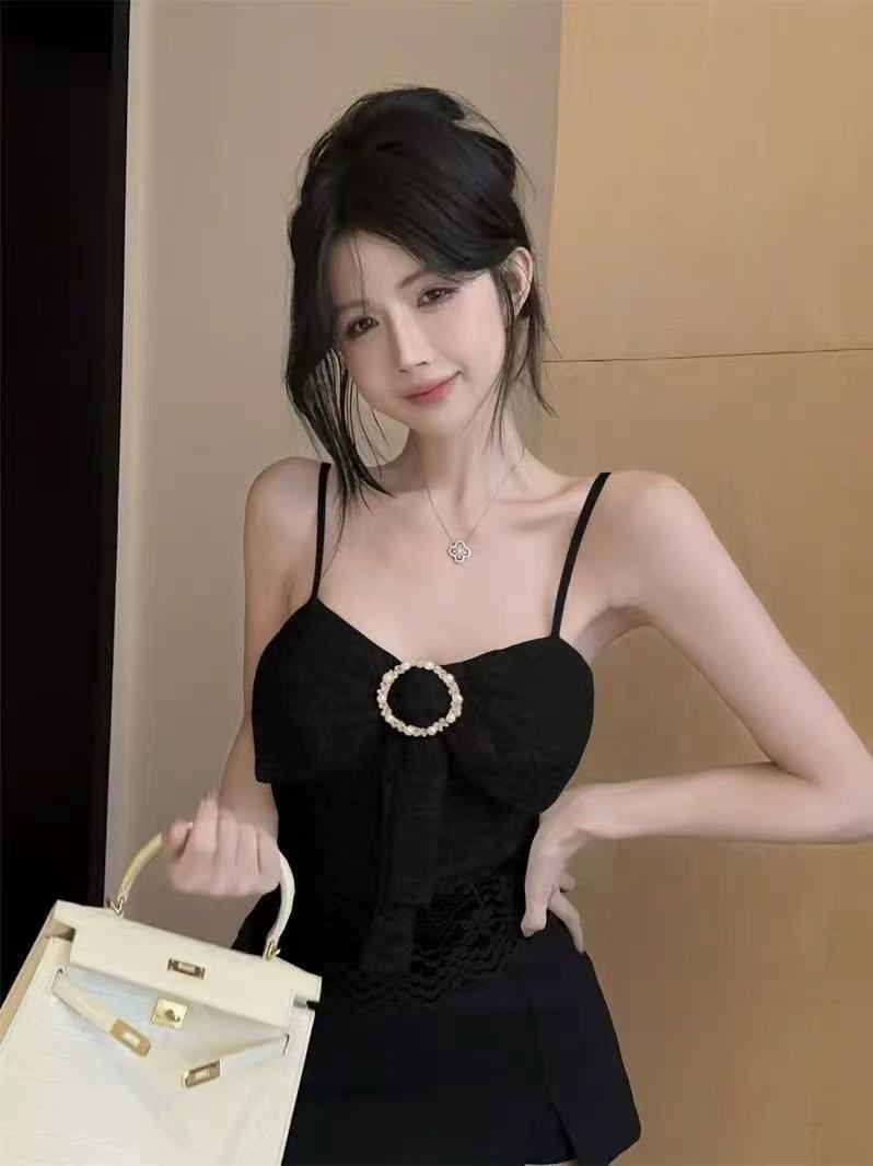 2025 봄 새 스타일 연예인 스타일 활 카미 솔 여성 섹시한 쇼트 탑 가슴 패드스토어 가기