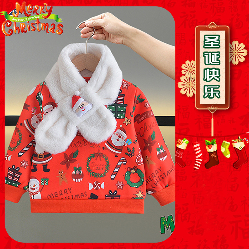 소년 소녀 기모 크리스마스 공연 옷 유치원 설날 공연 옷 아기 가을과 겨울 기모 귀여운 새해 옷