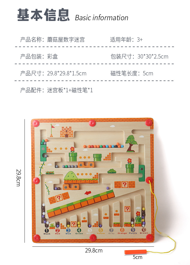 YHM-蘑菇屋数字迷宫:产品尺寸:30*30*2.5cm 0.8KG 装箱数:28个 外箱尺寸: 38.5*31*61.5CM 毛/净重:16.5/16KG