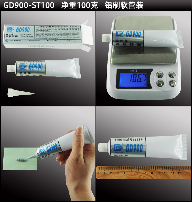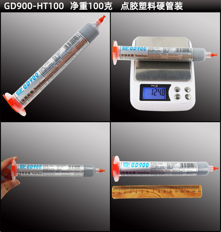 • GD900-HT100 회색 4.8W/M-K 순중량 100g 디스펜싱 플라스틱 경질 튜브