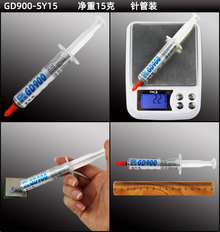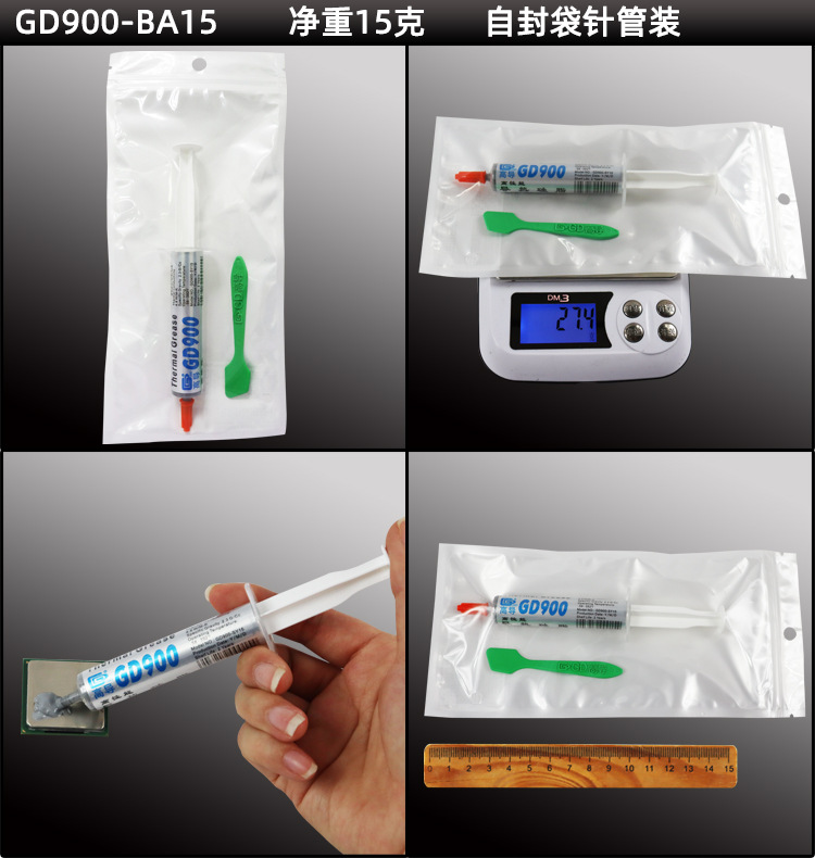 • GD900-BA15 회색 4.8W/M-K 순중량 15g 바늘 튜브(지퍼백 포함)