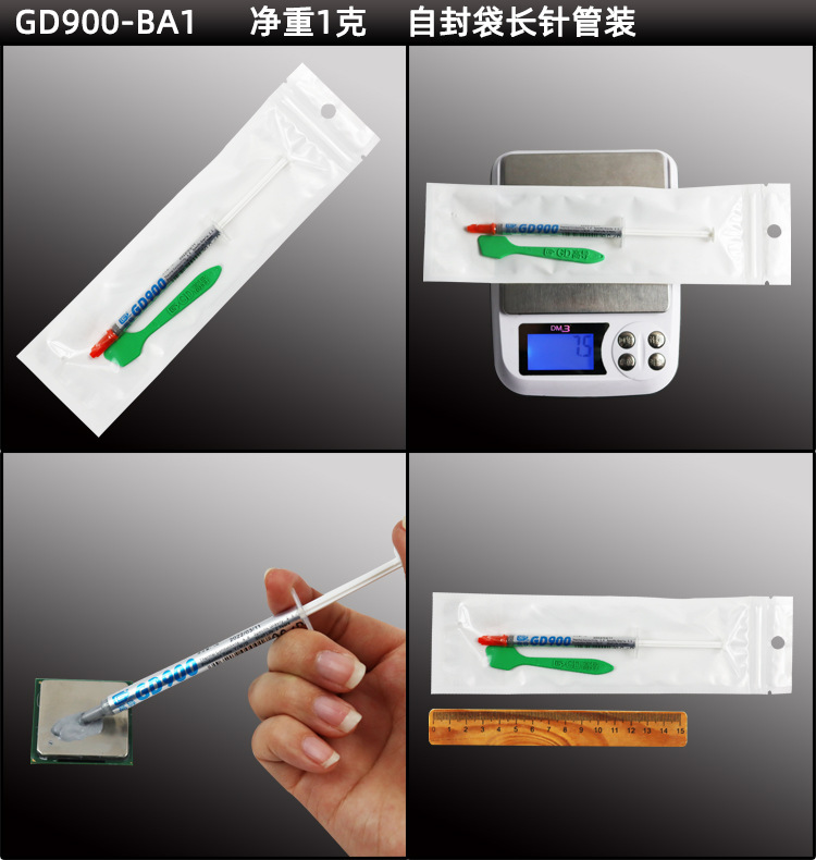• GD900-BA3 회색 4.8W/M-K 순중량 3g 바늘 튜브(지퍼백 포함)