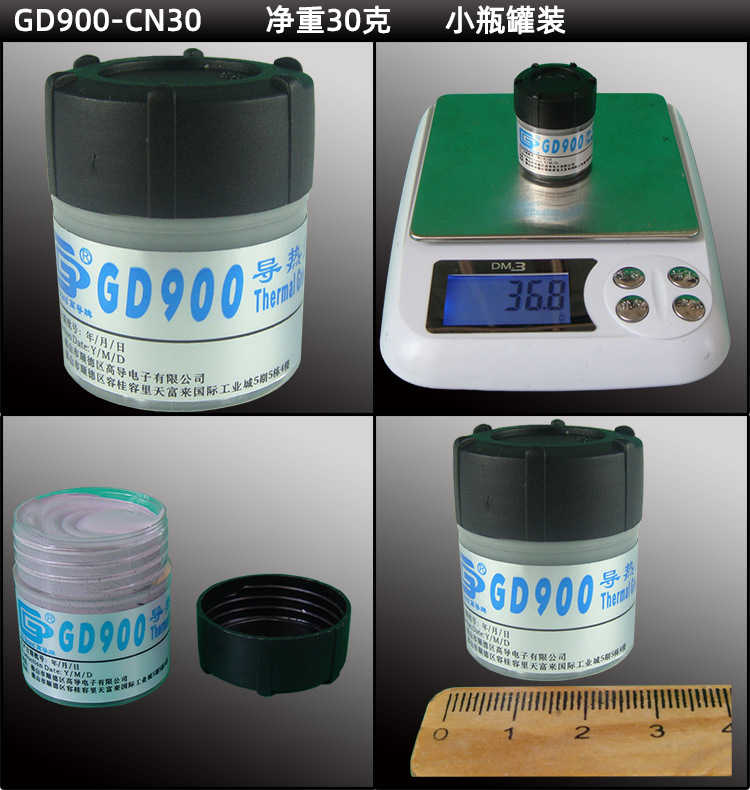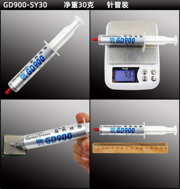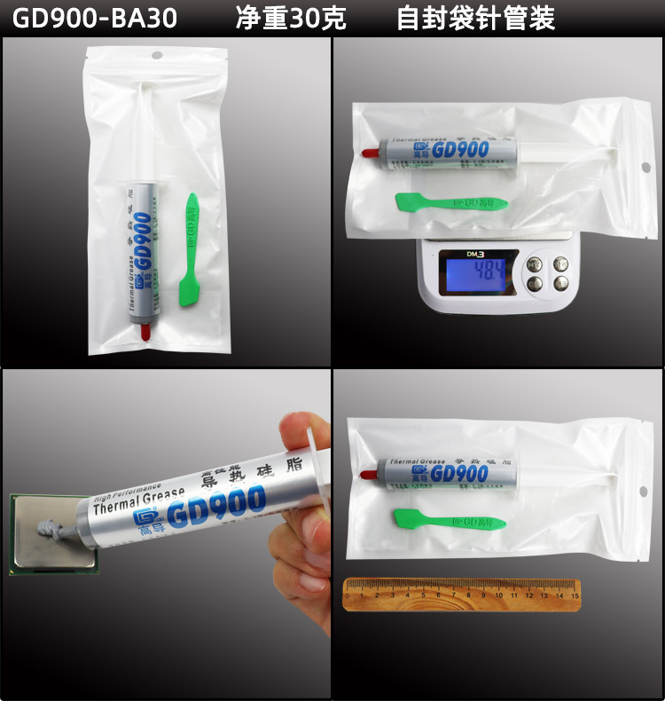 • GD900-BA30 회색 4.8W/M-K 순중량 30g 바늘 튜브(지퍼백 포함)