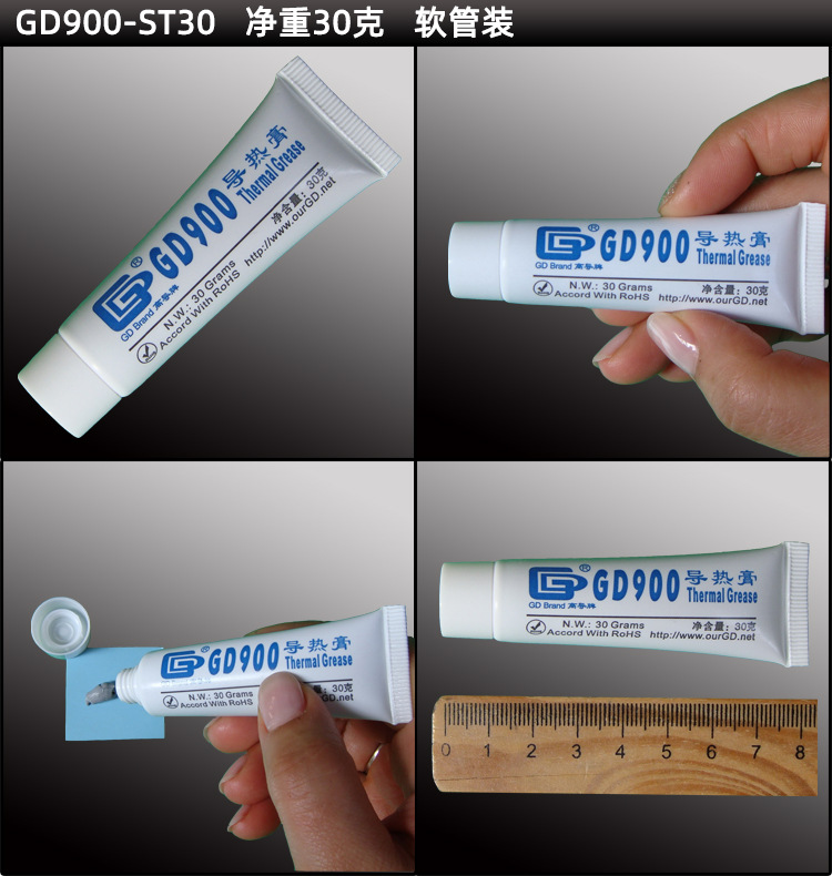 • GD900-ST30 회색 4.8W/M-K 순중량 30g 플라스틱 호스