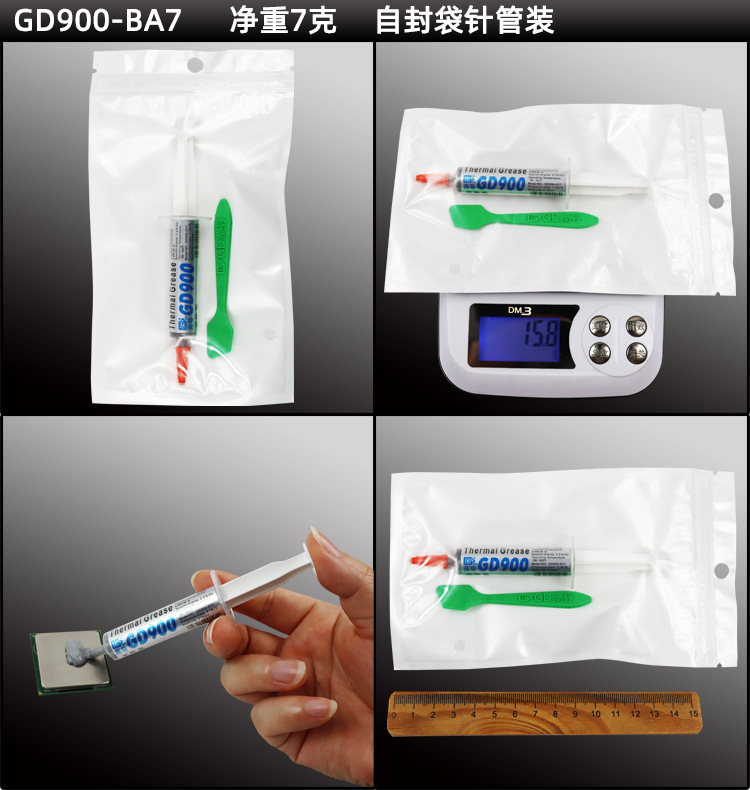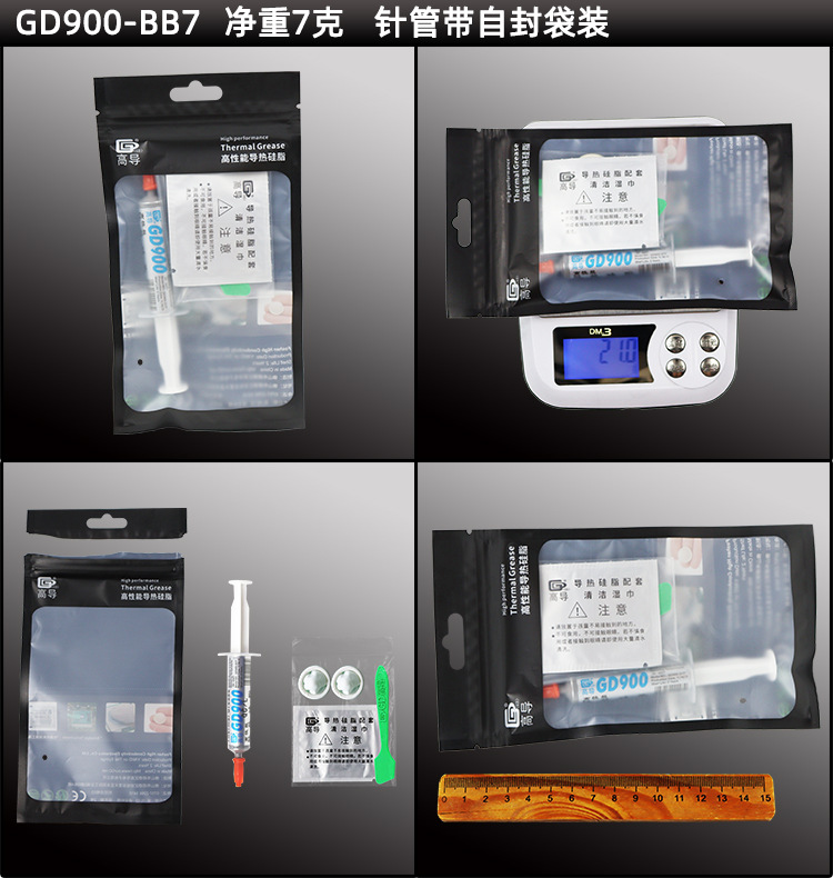 • GD900-BB7 회색 4.8W/M-K 순중량 7g 바늘 튜브(지퍼백 포함)