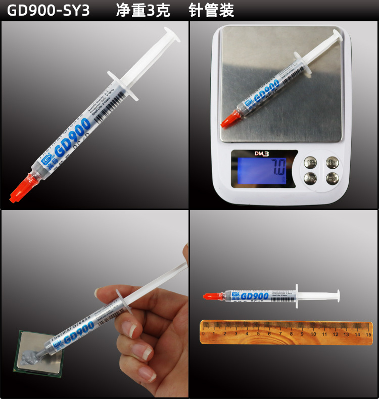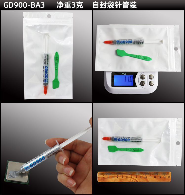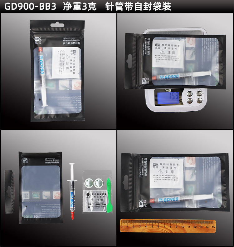 • GD900-BB3 회색 4.8W/M-K 순중량 3g 바늘 튜브(지퍼백 포함)