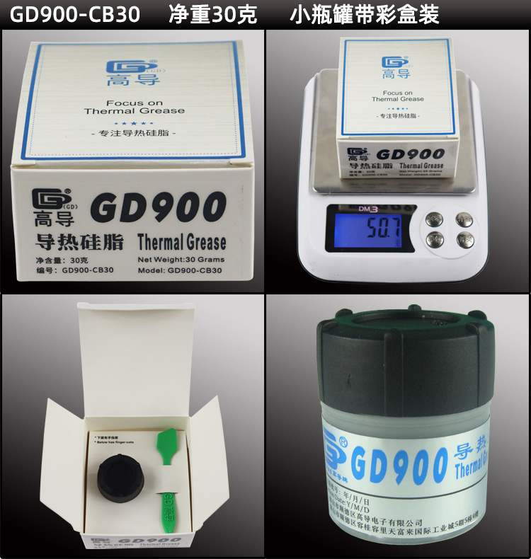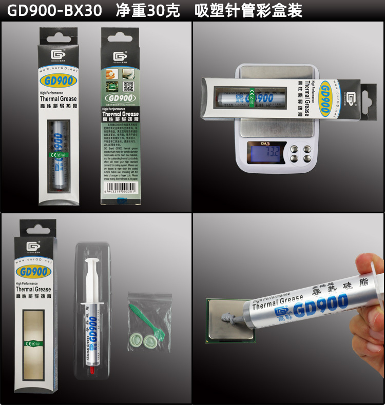 • GD900-BX30 회색 4.8W/M-K 순중량 30g 바늘 튜브(블리스터 상자 및 색상 상자 포함)