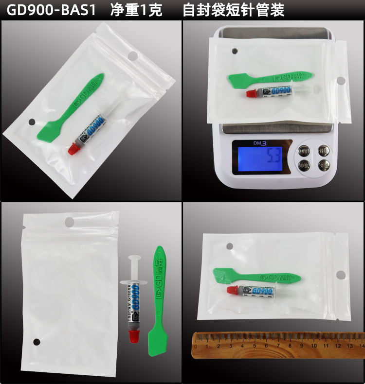 • GD900-BAS1 회색 4.8W/M-K 순중량 1g 지퍼백에 짧은 바늘 튜브