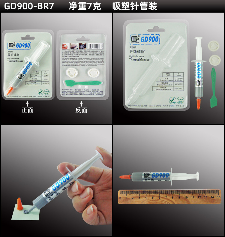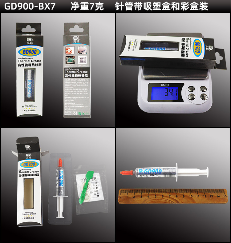 • GD900-BX7 회색 4.8W/M-K 순중량 7g 바늘 튜브(블리스터 상자 및 색상 상자 포함)