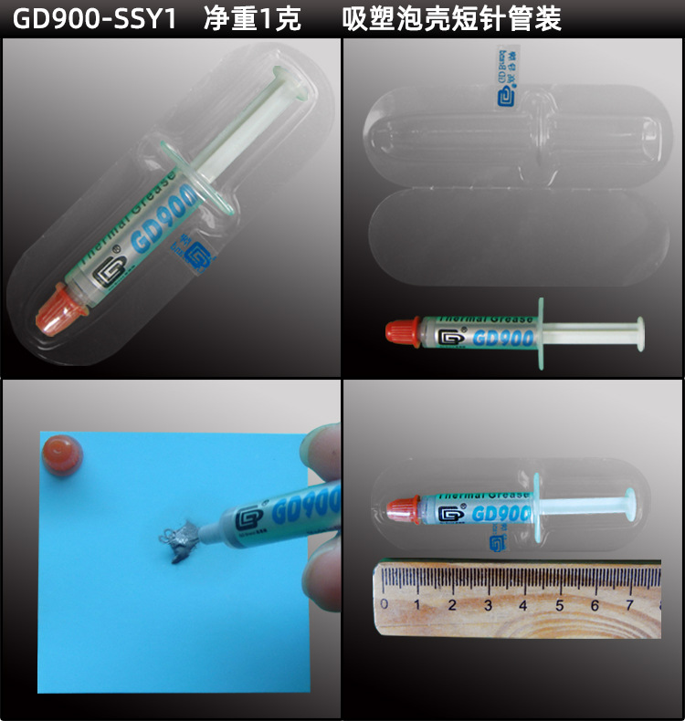 • GD900-SSY1 회색 4.8W/M-K 순중량 1g 짧은 바늘 튜브(블리스터 버블 쉘 포함)