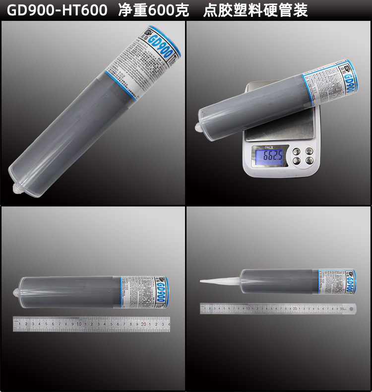 • GD900-HT600 회색 4.8W/M-K 순중량 600g 디스펜싱 플라스틱 경질 튜브