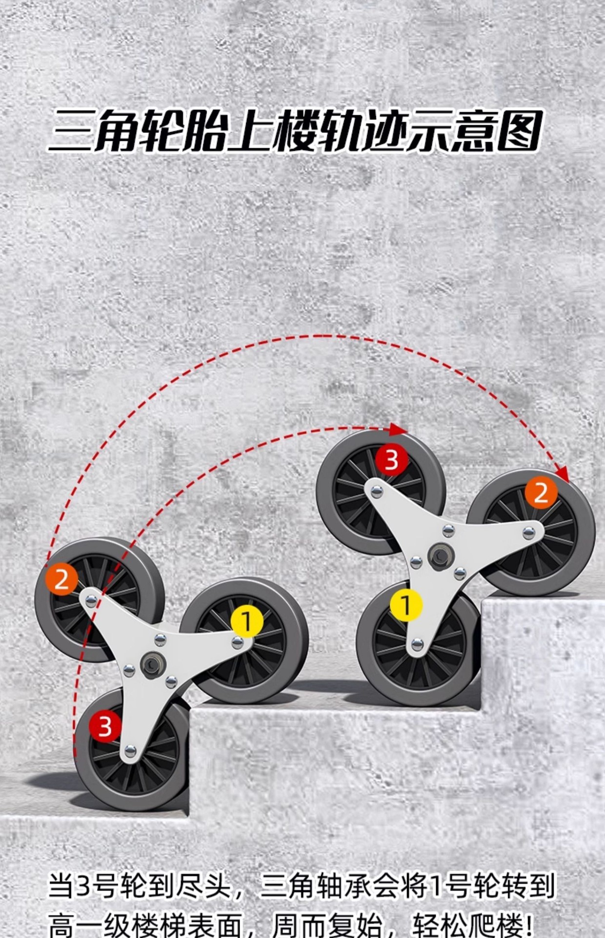 • [플래그십 계단 오르기 모델] 알루미늄 합금 프레임 + 플라스틱 강철 섀시 + TPR 초저소음 클라이밍 휠 + 바퀴 4개 + 탄성 로프