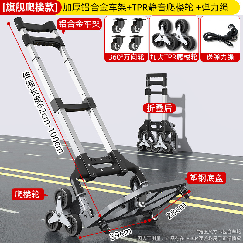 • [플래그십 계단 오르기 모델] 알루미늄 합금 프레임 + 플라스틱 강철 섀시 + TPR 초저소음 클라이밍 휠 + 천 가방 + 탄성 로프