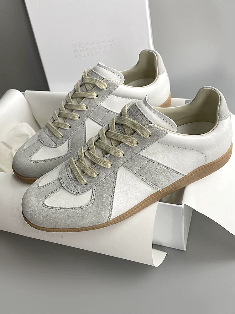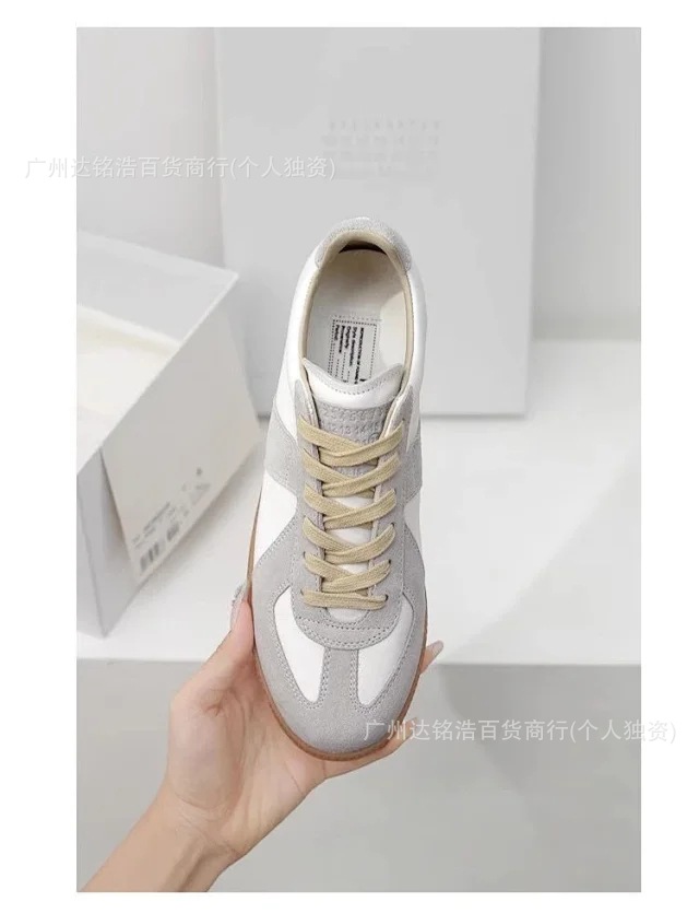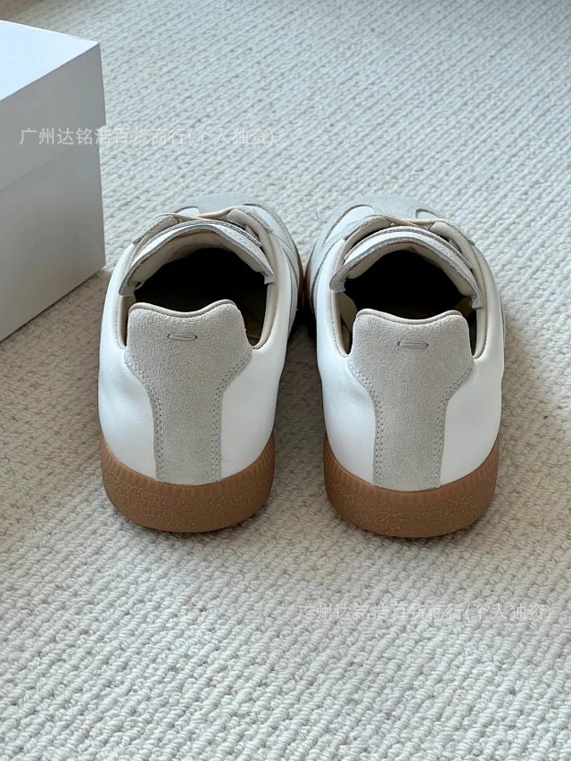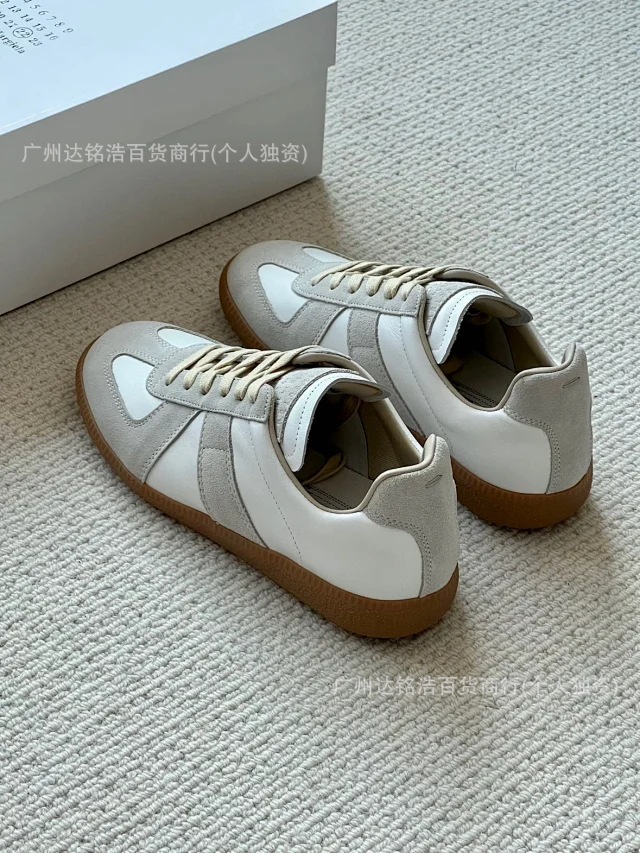 하이 버전 클래식 Margiela 여성 2025 새로운 도덕적 훈련 신발 커플 정품 가죽 캐주얼 스니커즈 남성용 레이스 업 화이트 신발스토어 가기