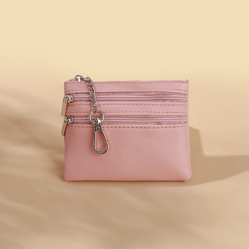 한국 스타일 패션 미니 코인 지갑 간단한 핸드 스토리지 파우치 카드 홀더 다층 지퍼 키 체인 코인 백