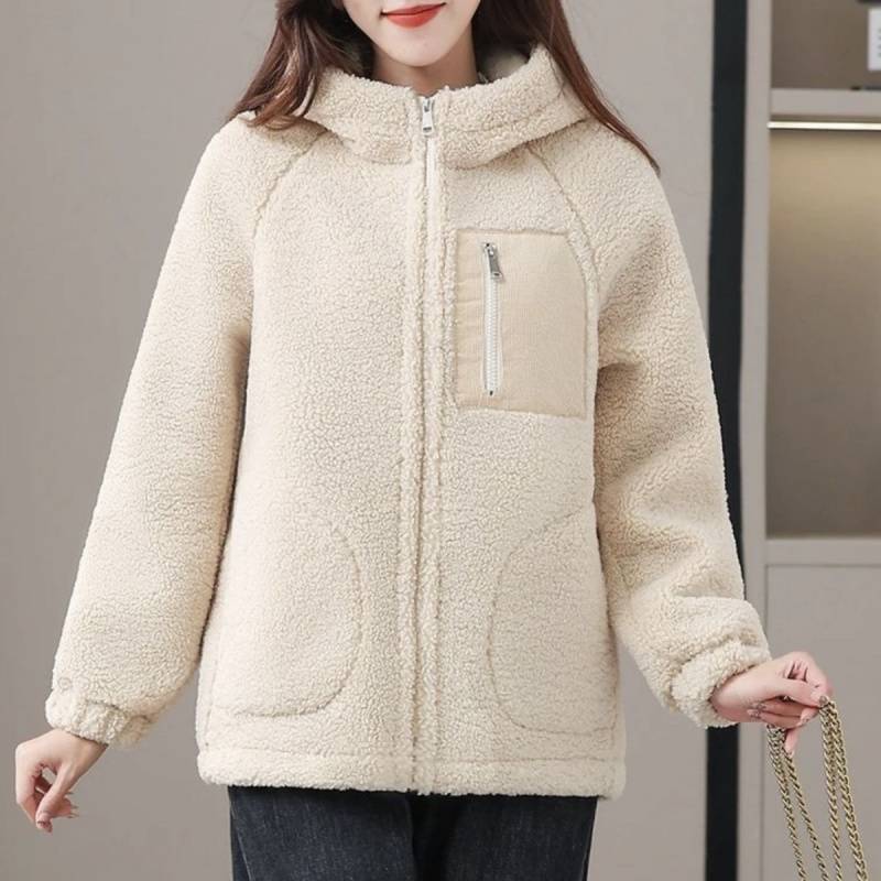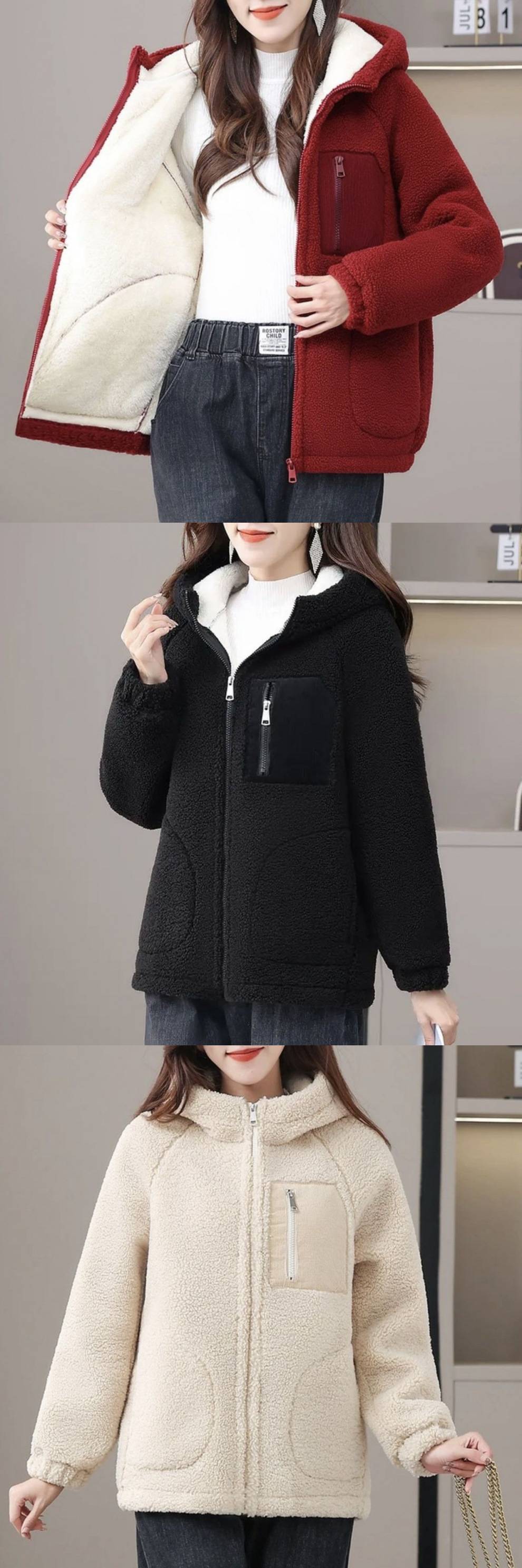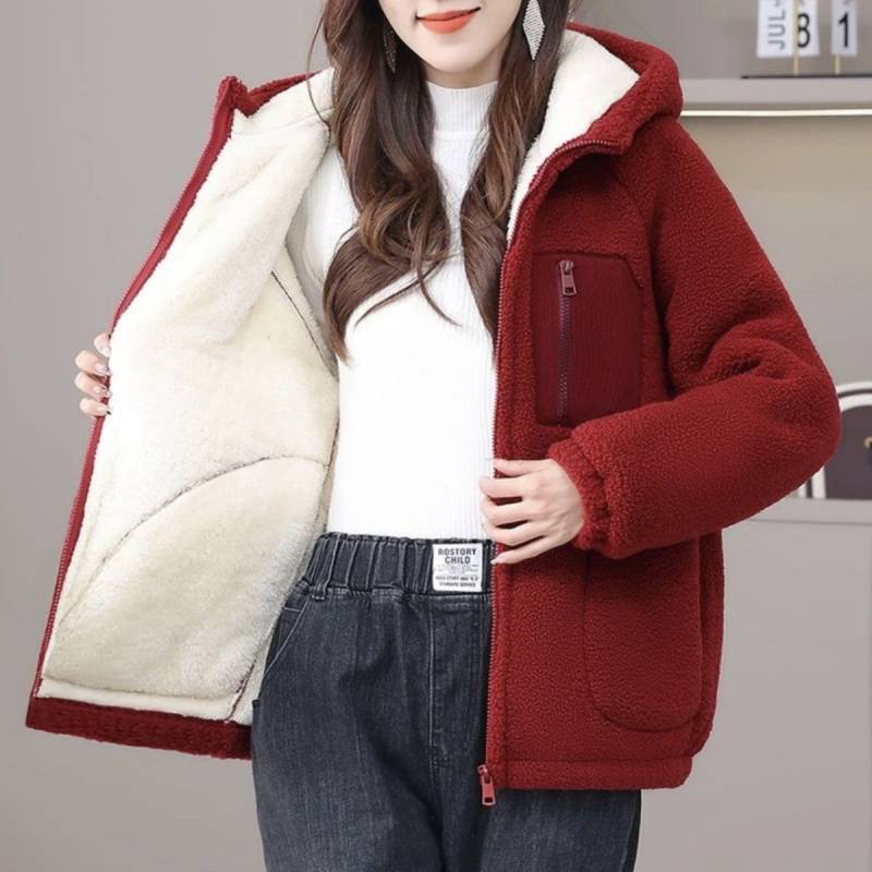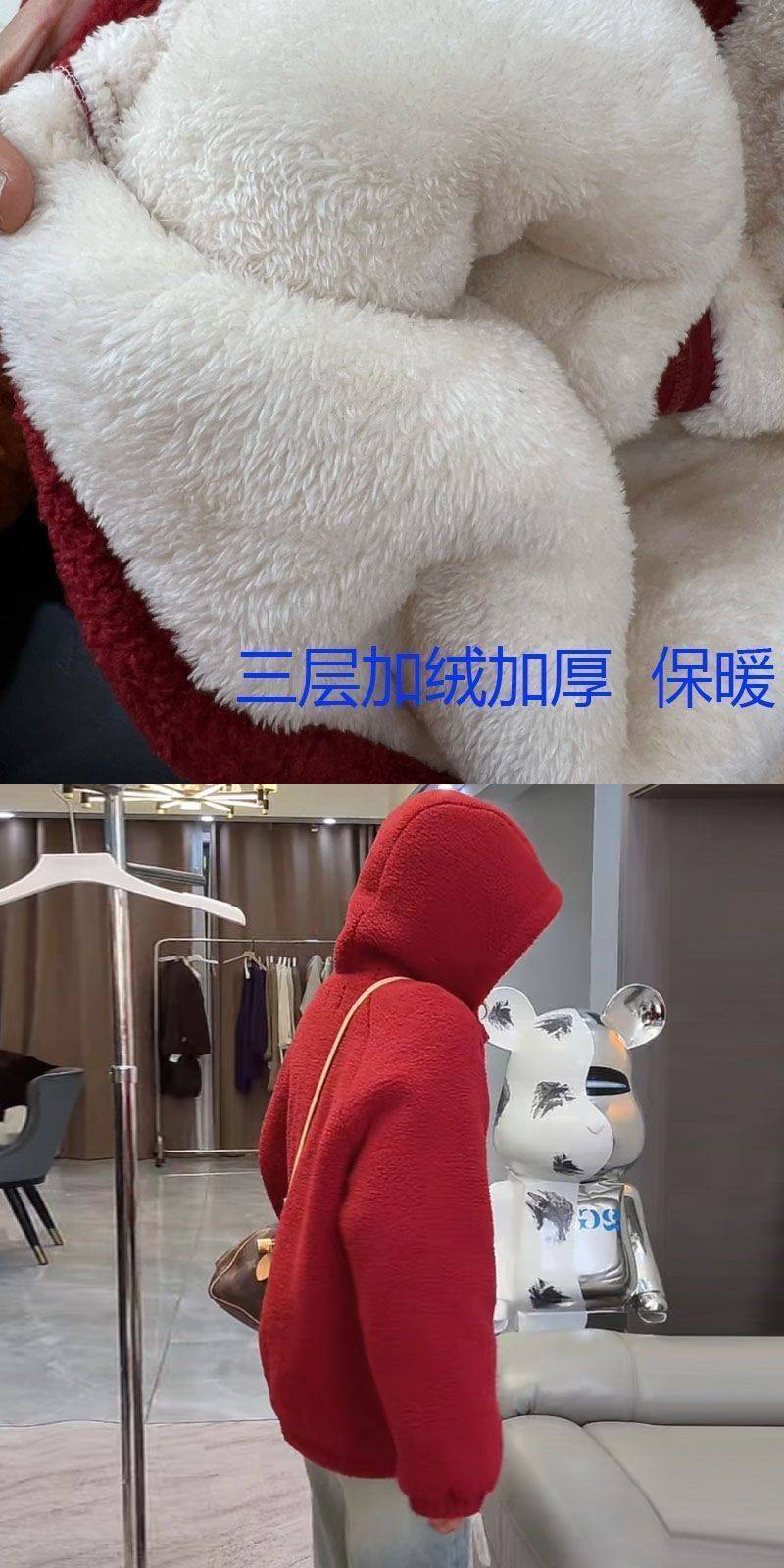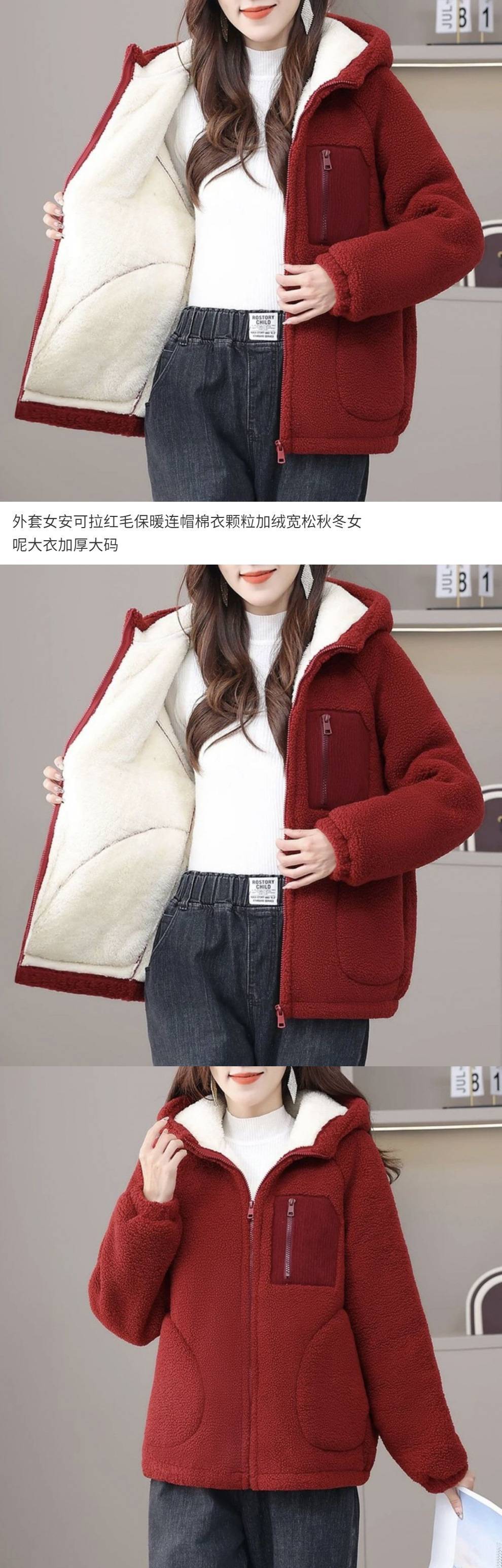 코트 여성용 안코 라 레드 헤어 따뜻한 후드 코튼 패딩 의류 과립 기모 느슨한 여성용 모직 코트 가을과 겨울 플러스 사이즈 두껍게스토어 가기