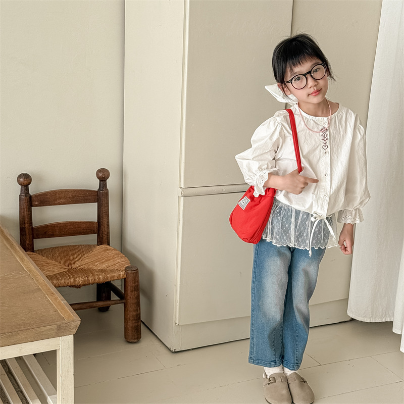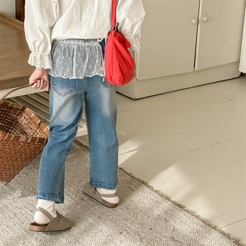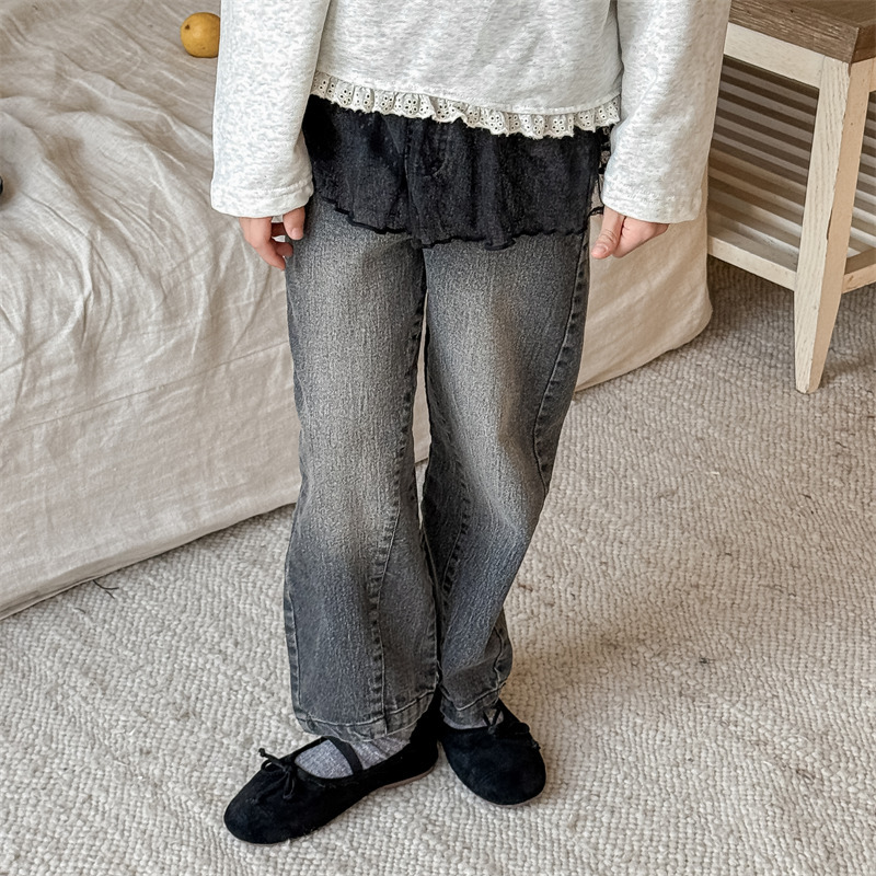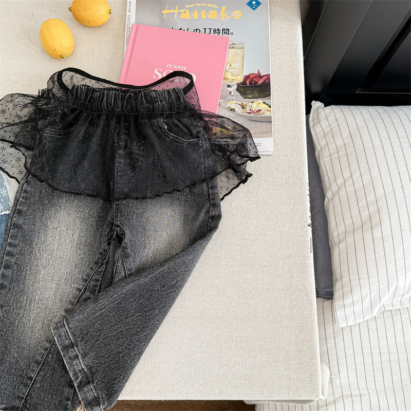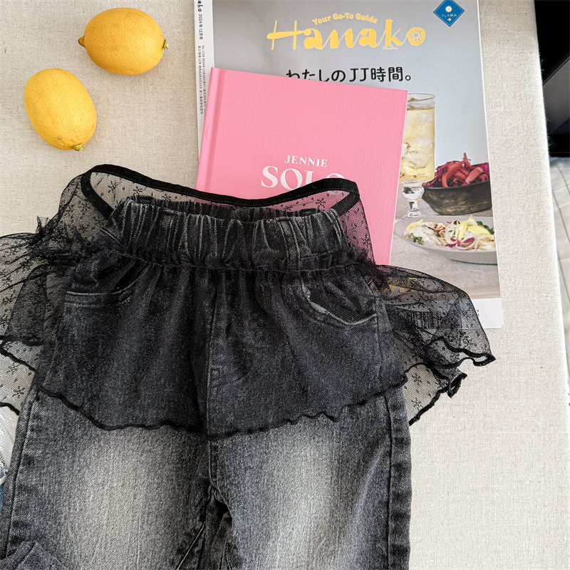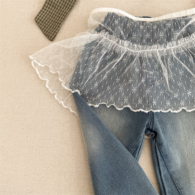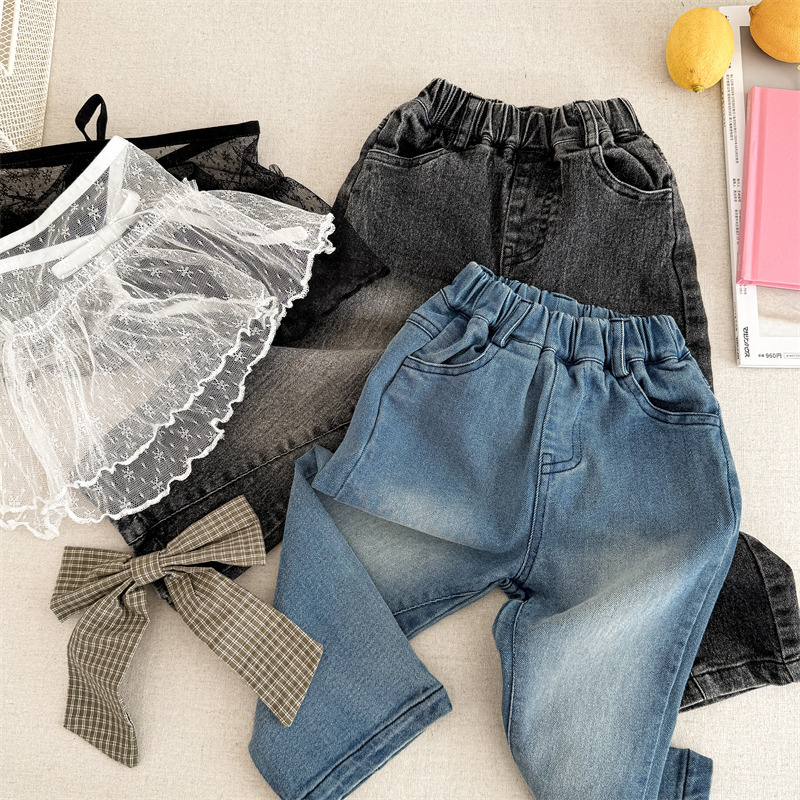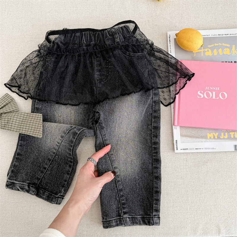 2026 봄 아동복 신상품 어린이 한국 스타일 거즈 스커트 투피스 세트 데님 바지 여아용 바지 봄 스타일 바지 6026