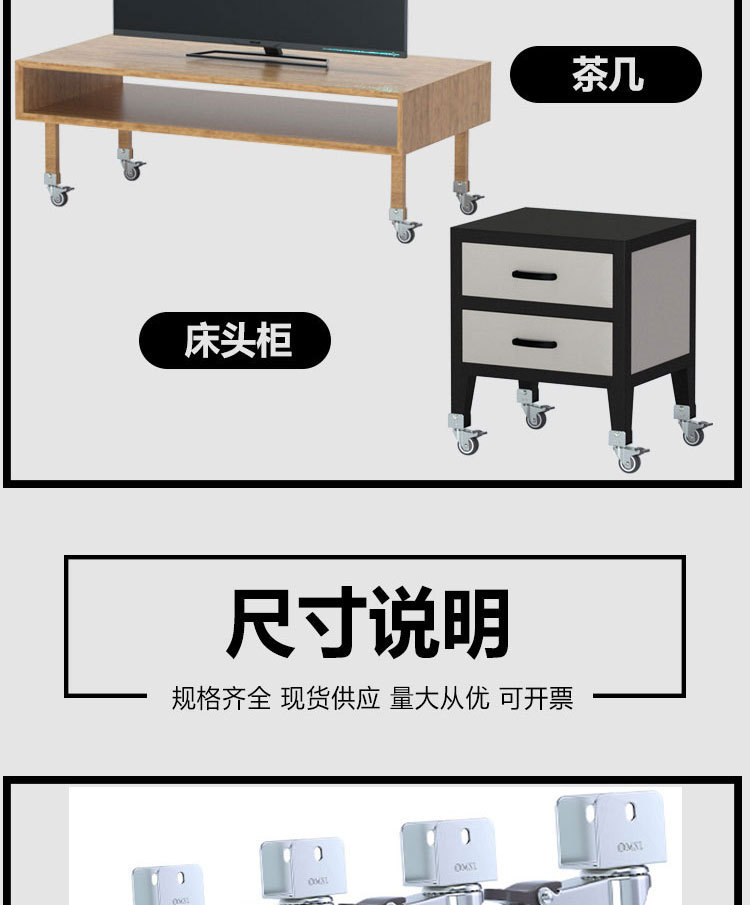 유니버설 휠 캐스터 가구 U 자형 20 아기 침대 도르래 음소거 부목 30 휠 브레이크 스티어링 휠 16