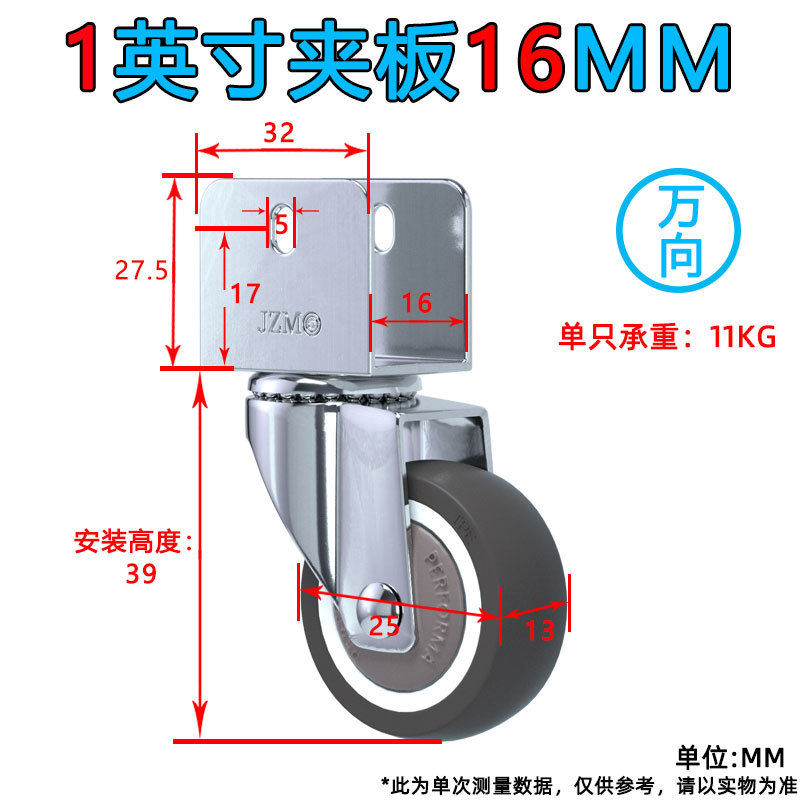 • 1.5인치 범용 휠 1개(U 부목 내부 폭 16MM)