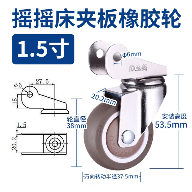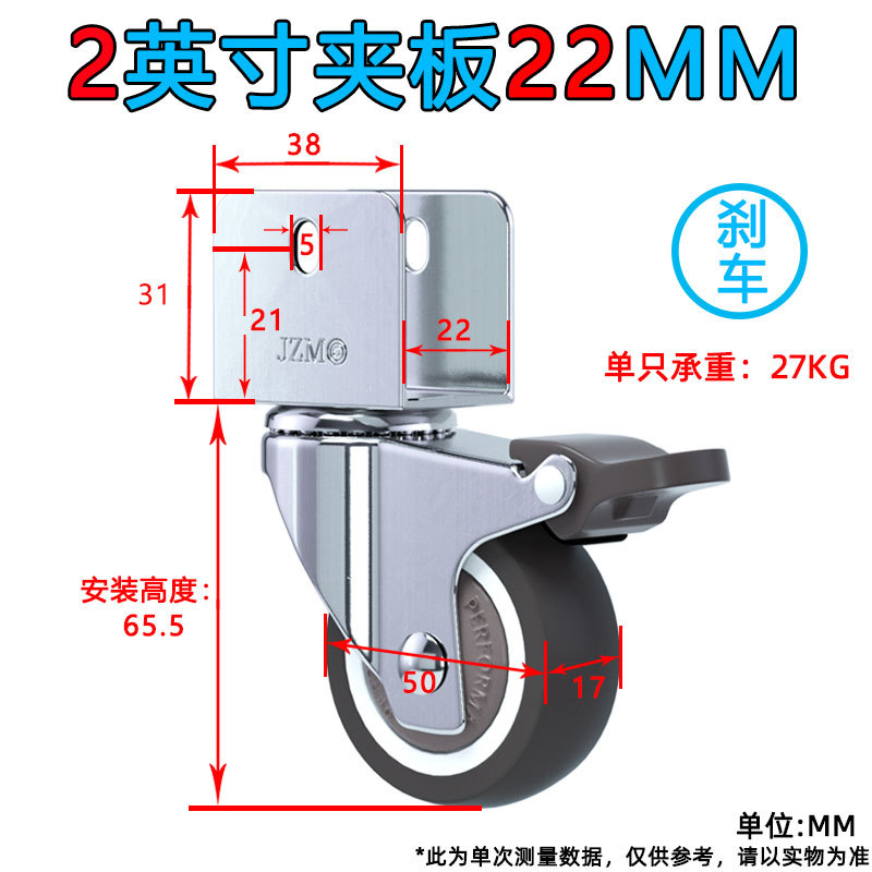 • 1.5inch 브레이크 휠 1개(U 부목 내부 폭 22MM)