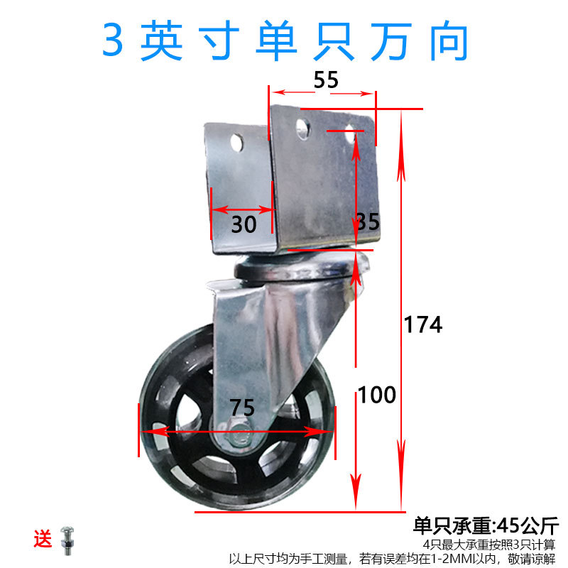 • 2인치 범용 휠 1개(U 부목 내부 폭 18MM)