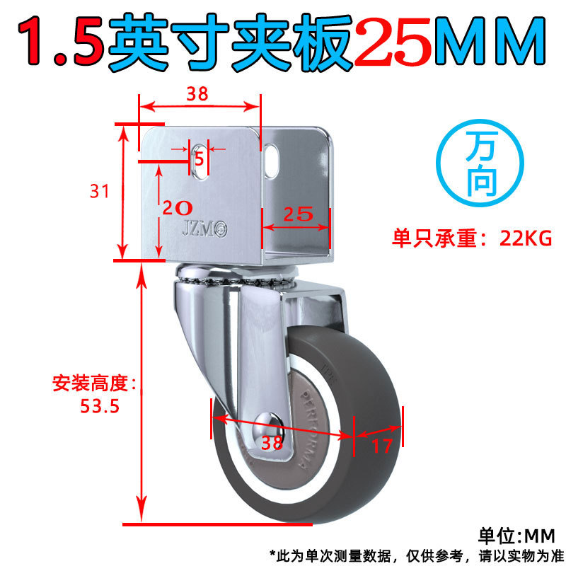 • 1.5인치 범용 휠 1개(U 부목 내부 폭 25MM)