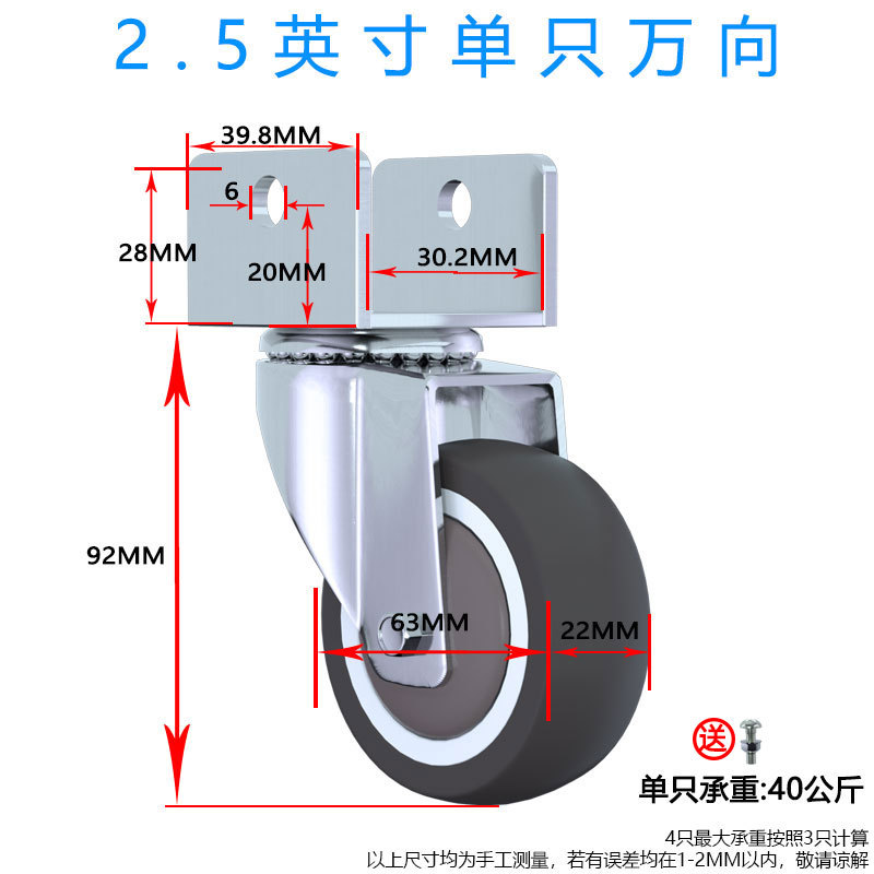 • 1.5인치 범용 휠 1개(U 부목 내부 폭 22MM)