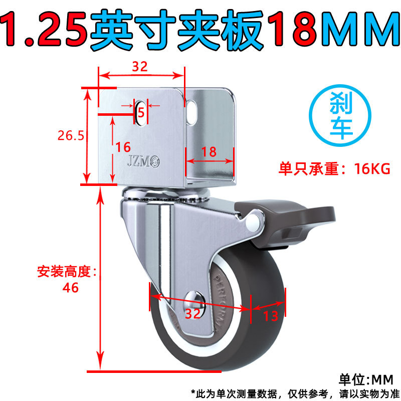 • 1.25inch 브레이크 휠 1개(U 부목 내부 폭 16MM)