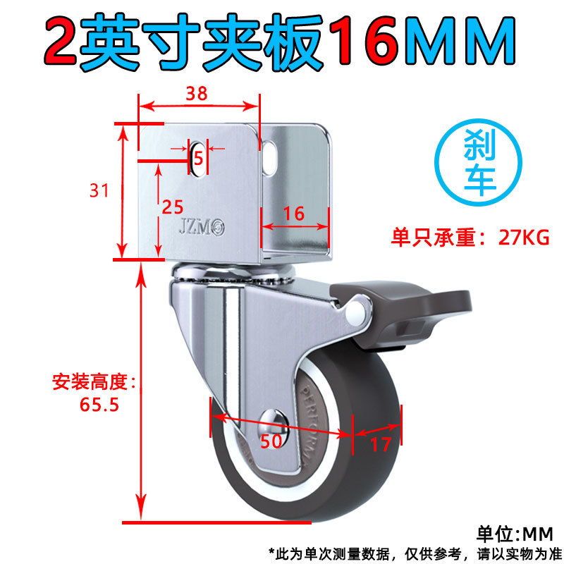 • 1.5inch 브레이크 휠 1개(U 부목 내부 폭 16MM)