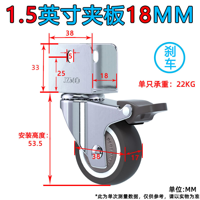 • 1.5inch 브레이크 휠 1개(U 부목 내부 폭 18MM)