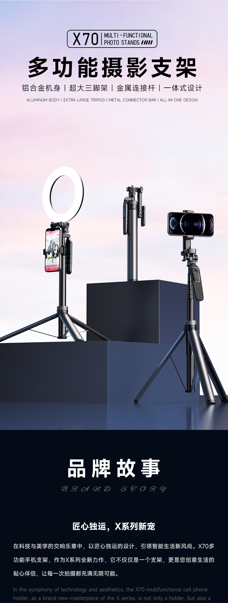 새로운 X70 모바일 삼각대 콘서트 더블 2 미터 라이브 플로어 스탠드 블루투스 셀카 스틱